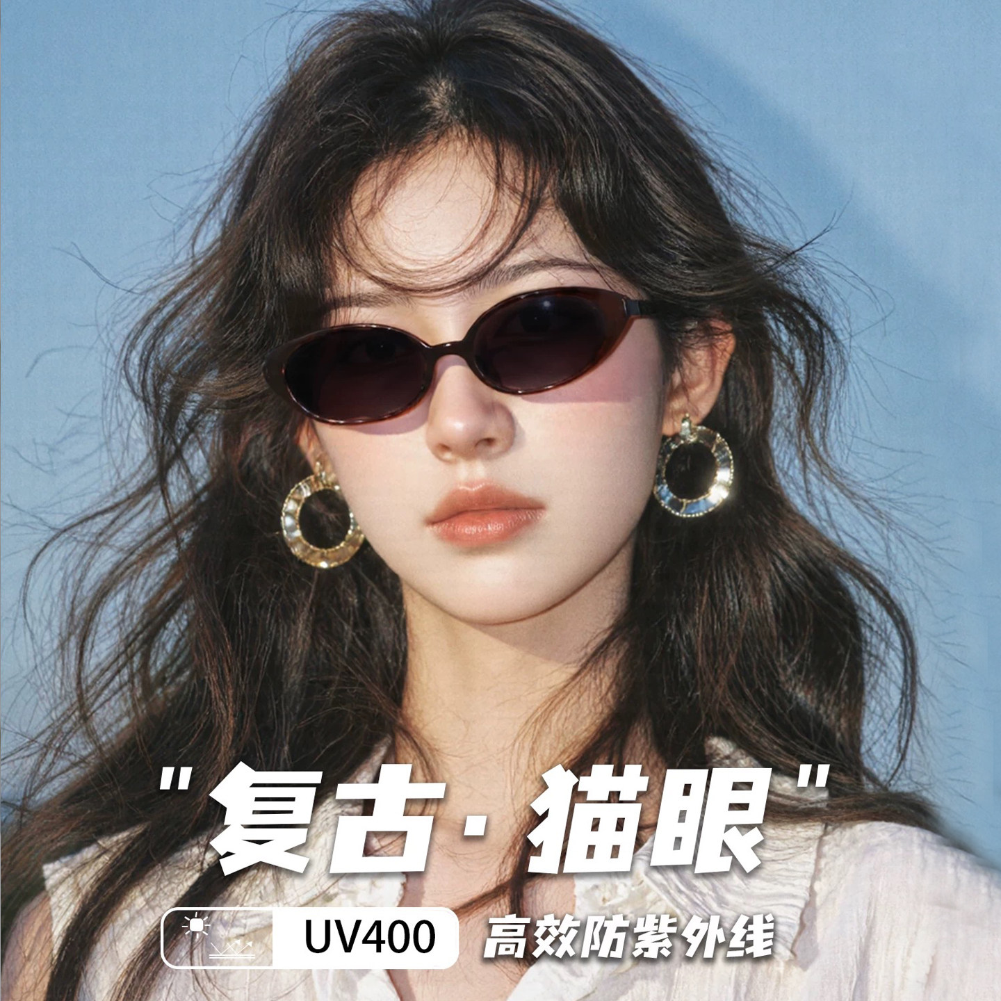 复古椭圆小框猫眼墨镜女2026新款高级感防紫外线黑色太阳眼镜小脸