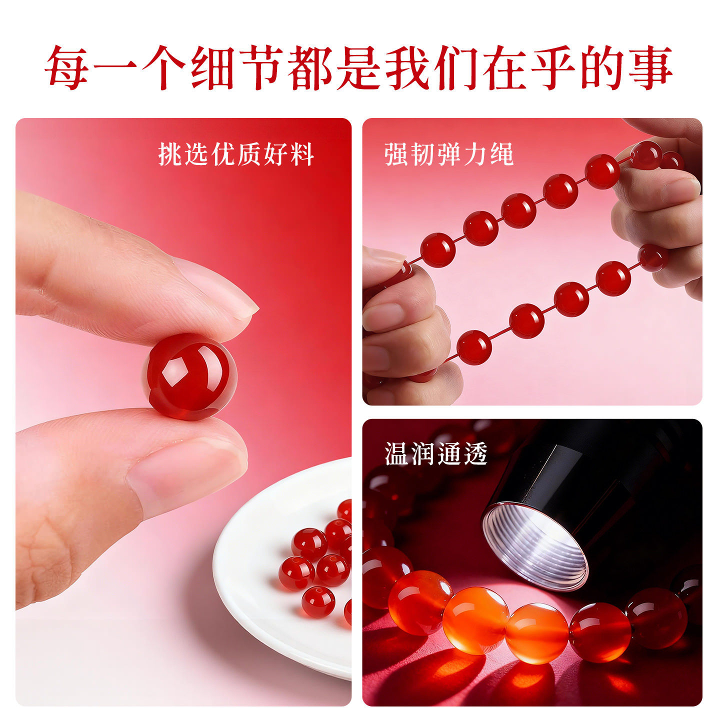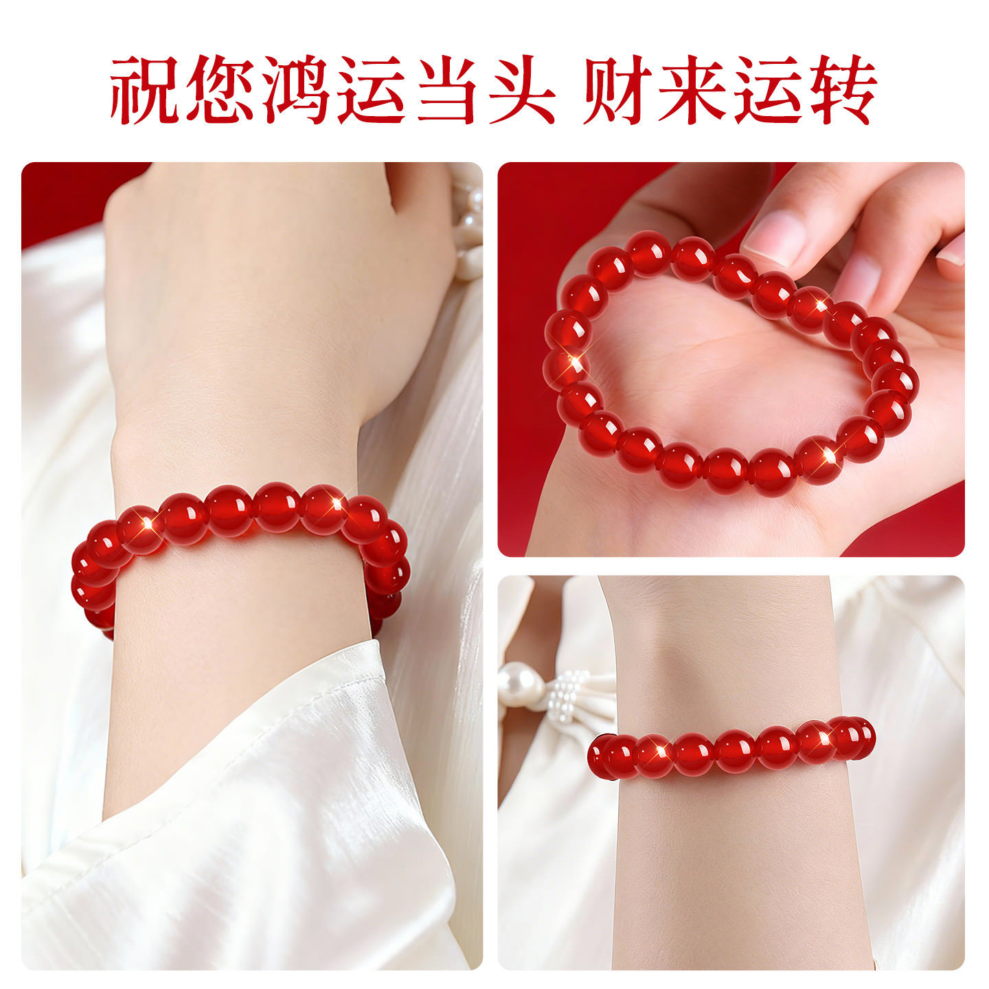 天然红玛瑙本命年红色手链手串手镯手饰女士女本命年生日礼物女生
