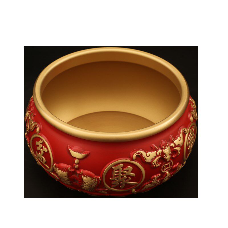 热销黄铜红色八福聚宝盆玄关酒柜家居客厅电视柜办公桌装饰品摆件
