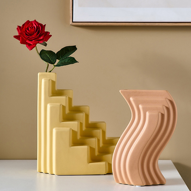 创意民宿风桌面书房摆件几何S形陶瓷建筑艺术酒柜格子柜书房软装