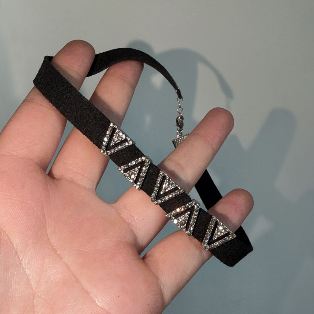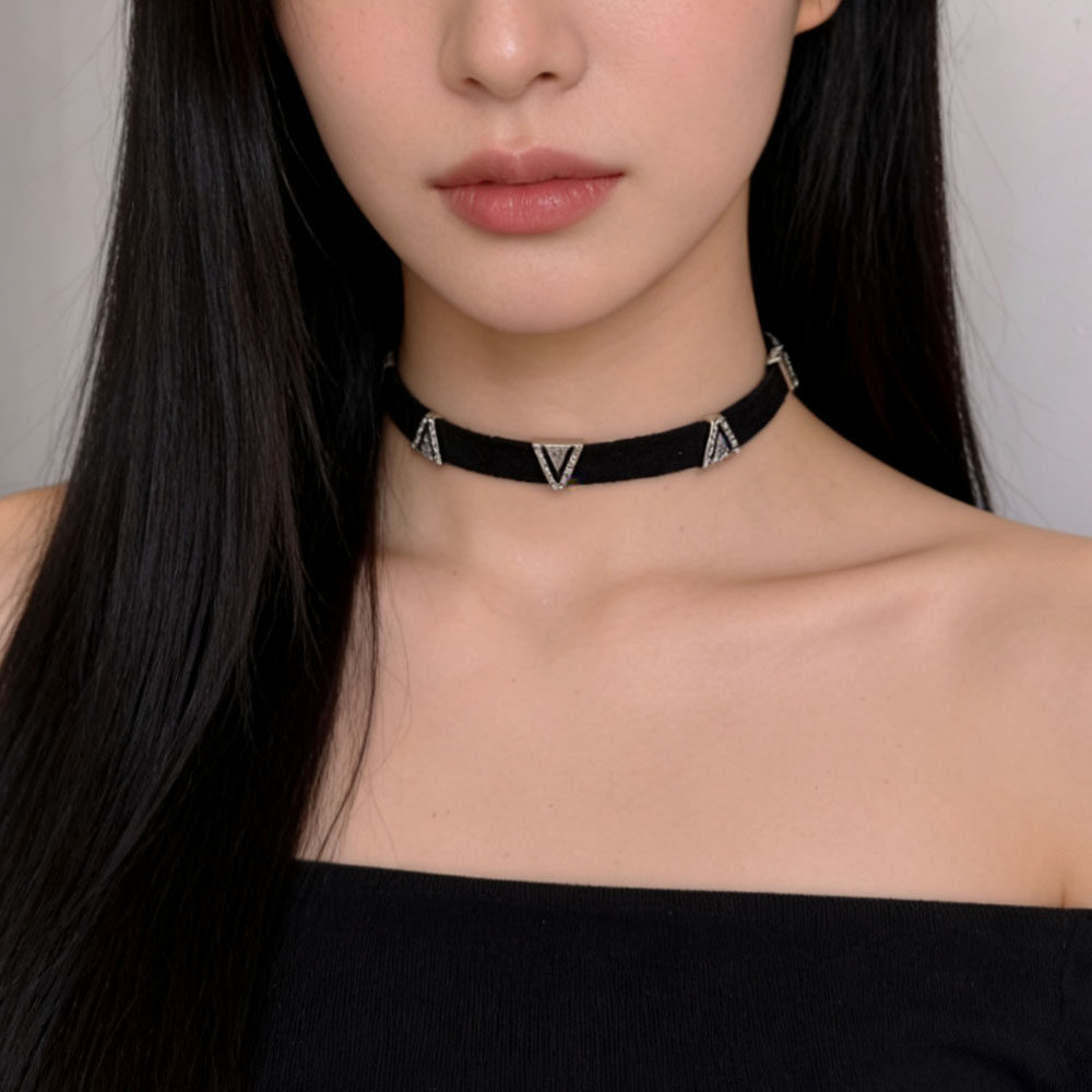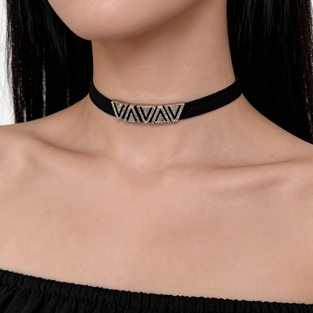 复古颈链黑色性感绒布水钻V字母网红锁骨链choker防过敏项链配饰