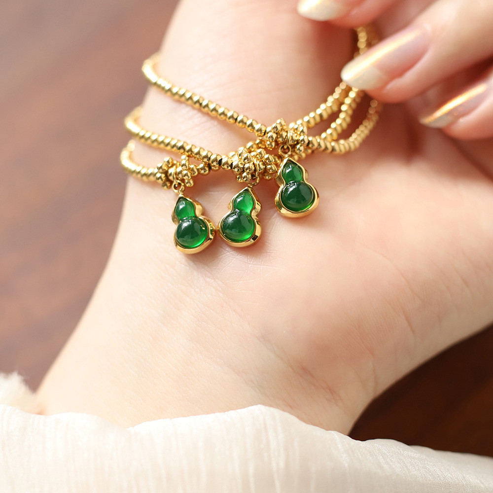 福禄生财~不掉色仿真翡翠葫芦绿色手链轻奢小众精致新款手饰礼物