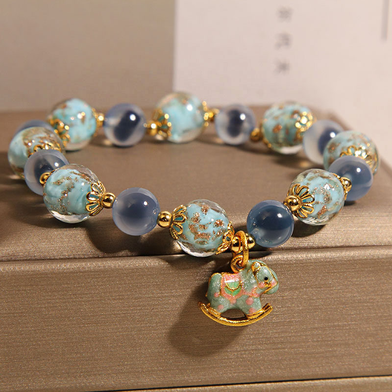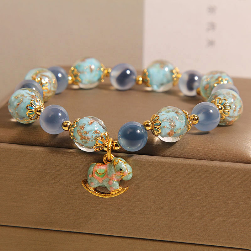 天然蓝色糖心玛瑙手链女轻奢小众精致夜光琉璃水晶手串送闺蜜礼物