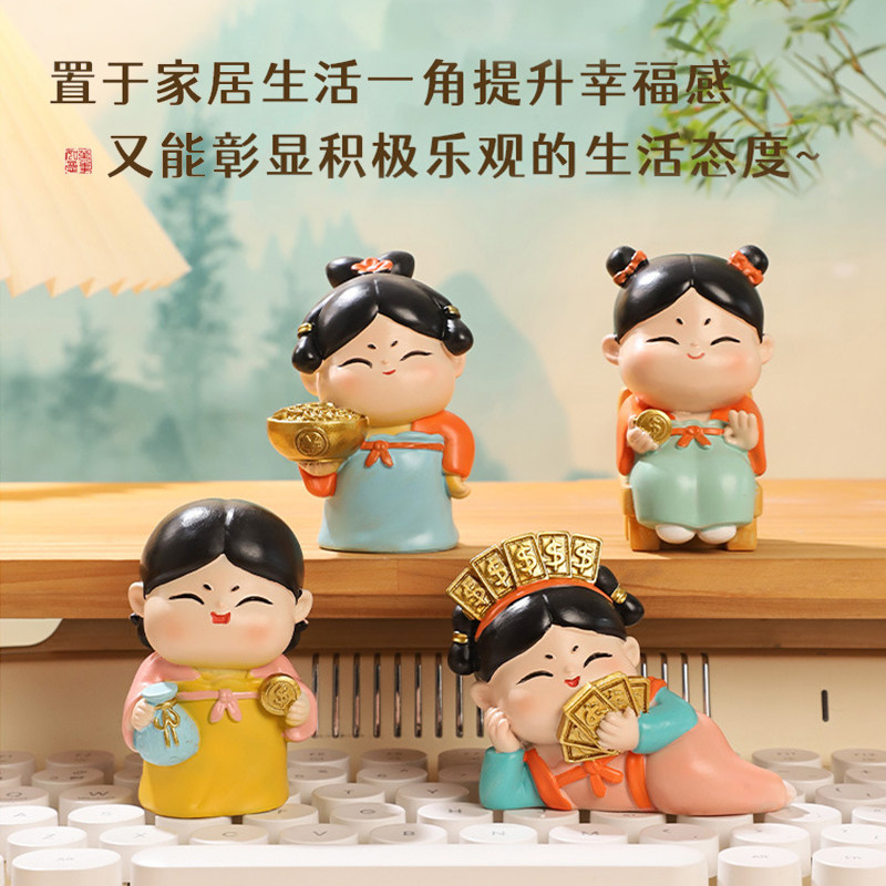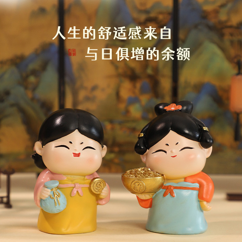 国风唐小圆生财之道小摆件创意家居装饰品客厅办公室桌面女生礼物