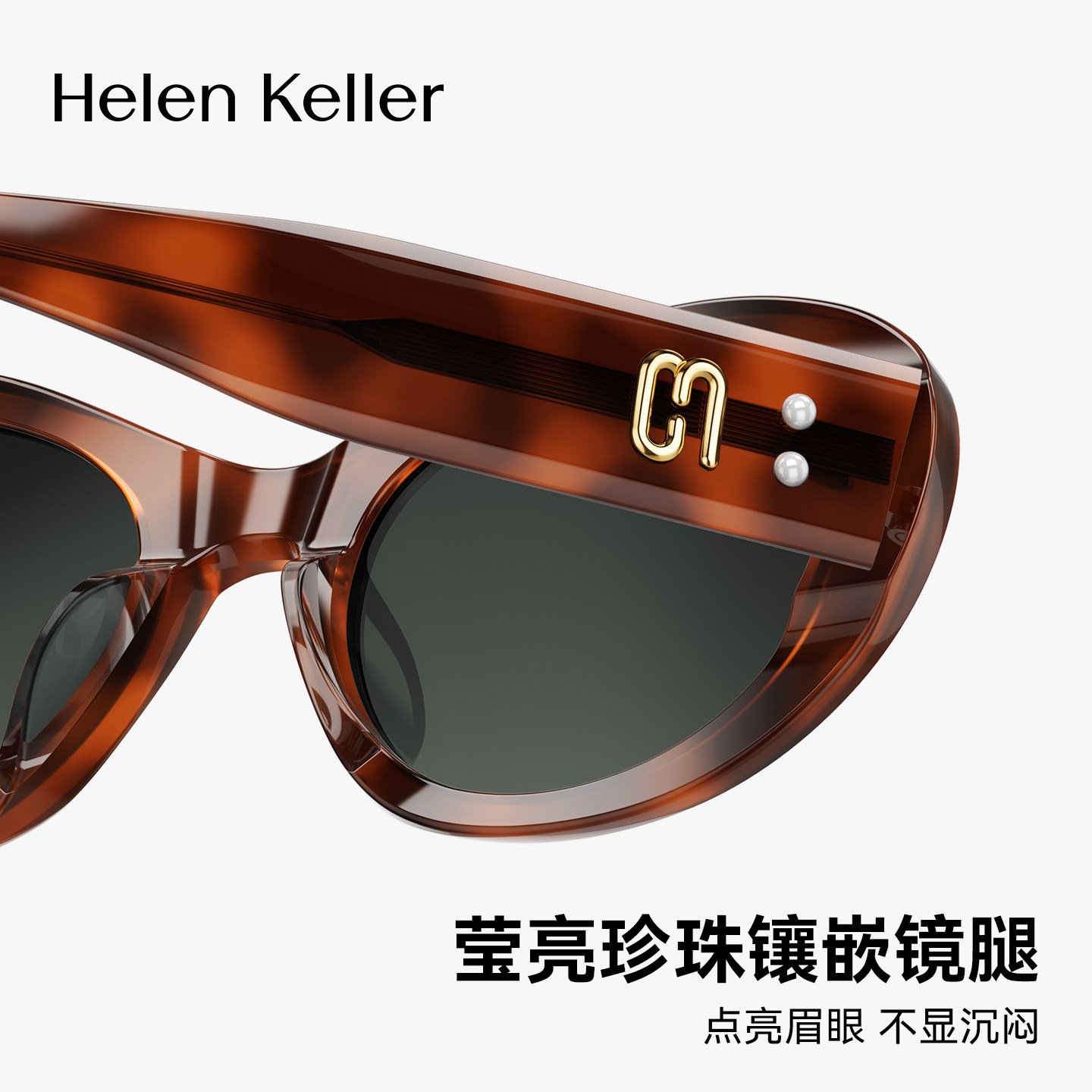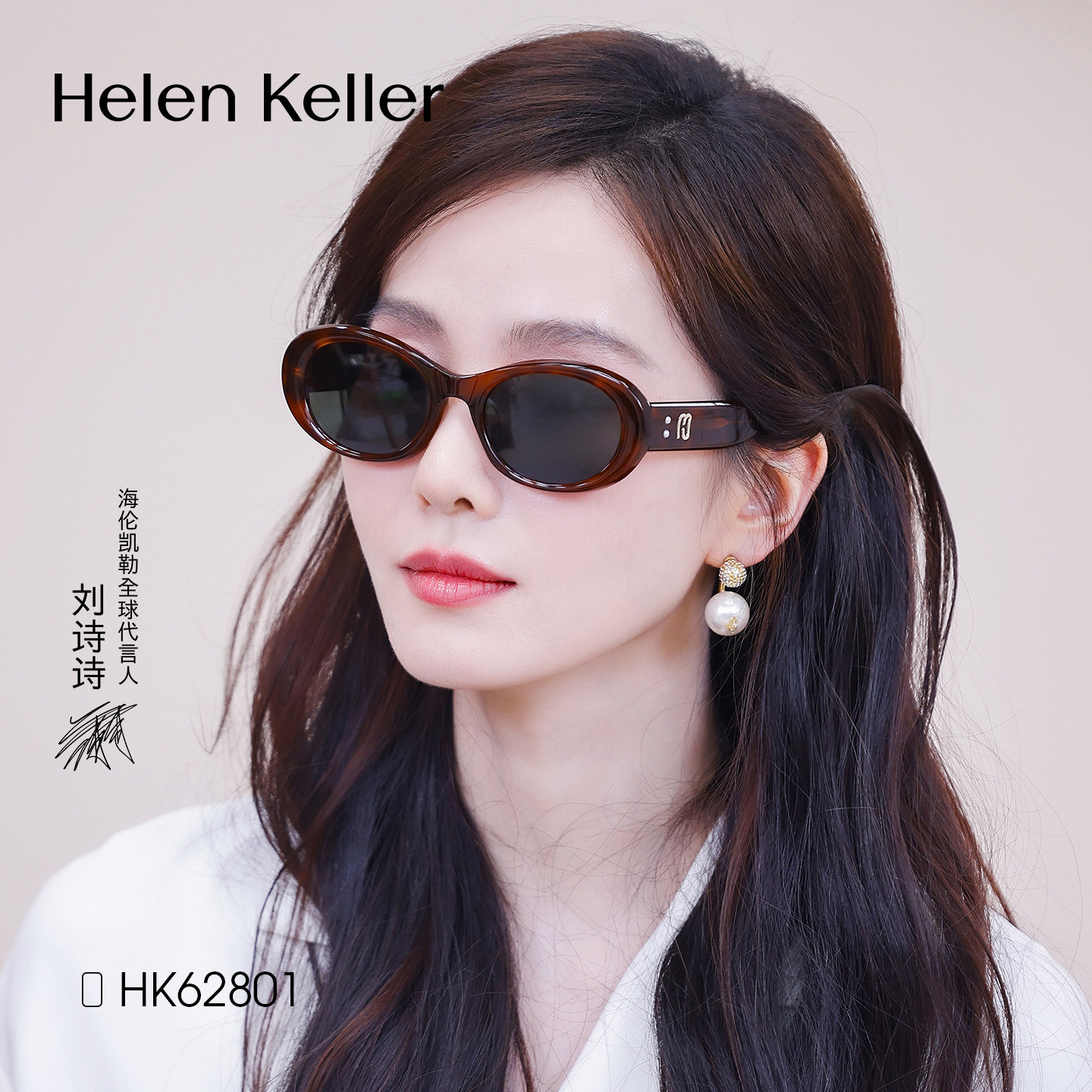 【圈圈镜】海伦凯勒刘诗诗同款时尚椭圆玳瑁板材太阳镜HK62801