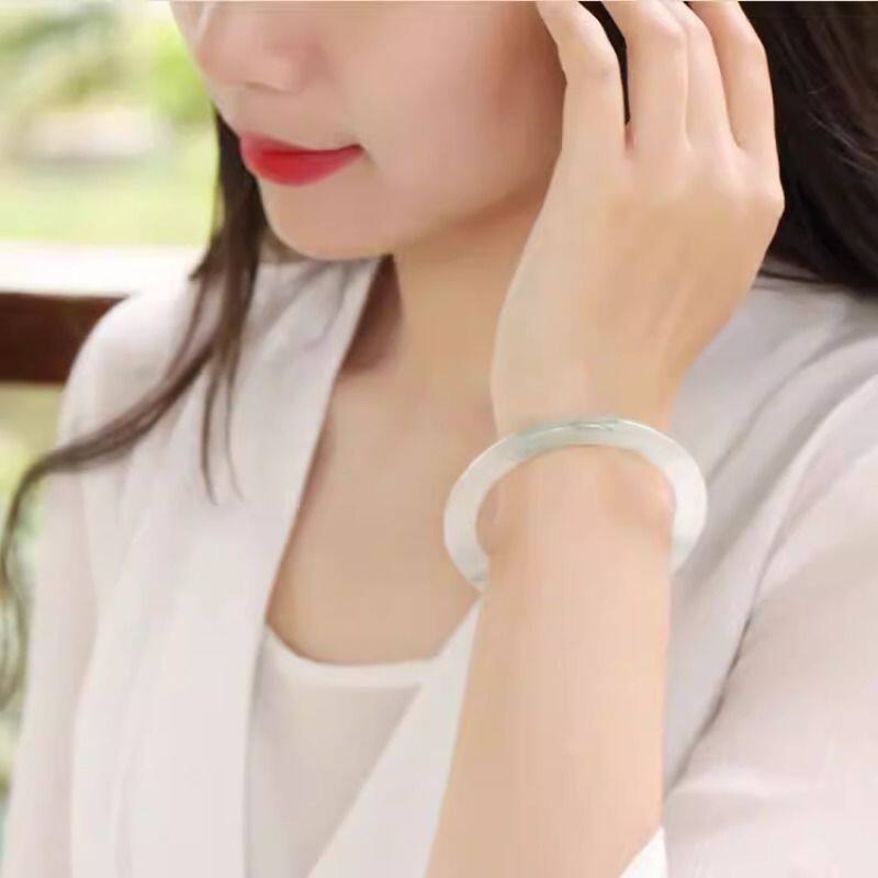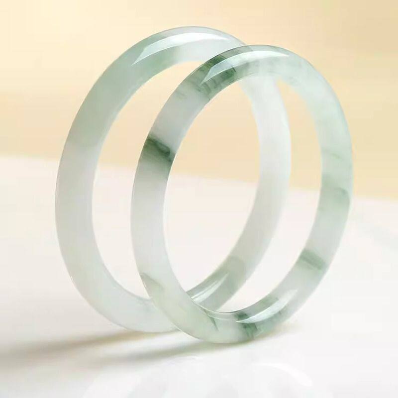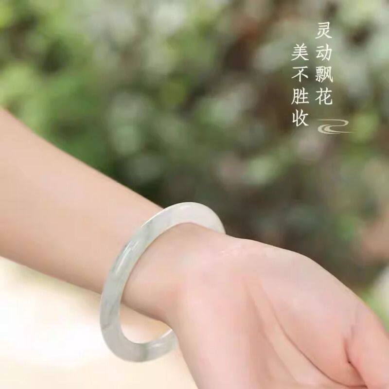 正品新疆天山翠玉手镯女士细圆条冰翠浅绿飘花玉镯子学生少女礼物