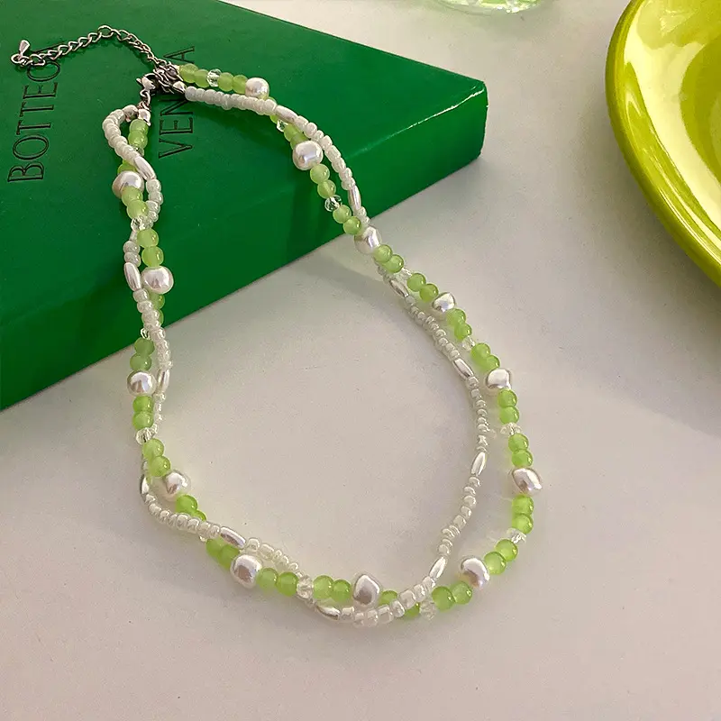 小清新绿色铃兰花朵珍珠项链韩国时尚甜美锁骨链网红项饰