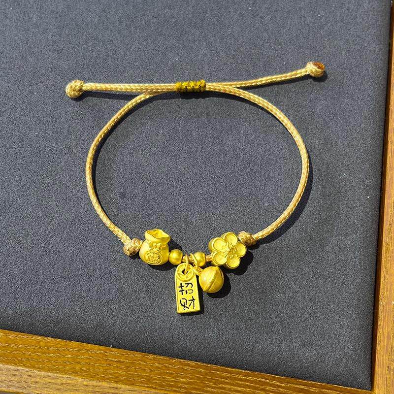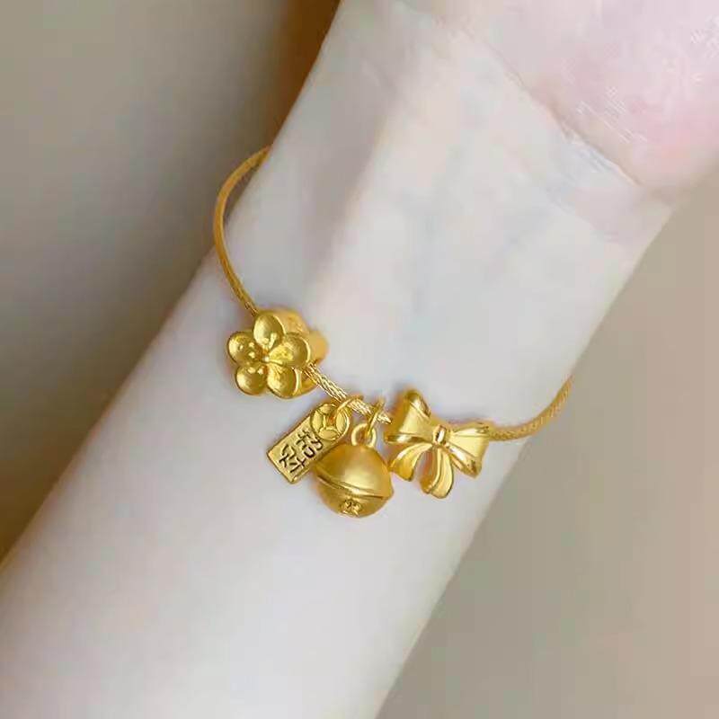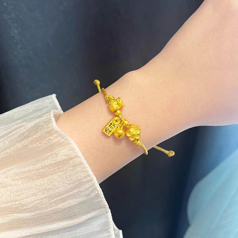 黄金色桃花铃铛手镯女2023新款福袋铃兰花半镯编织手链送女友闺蜜