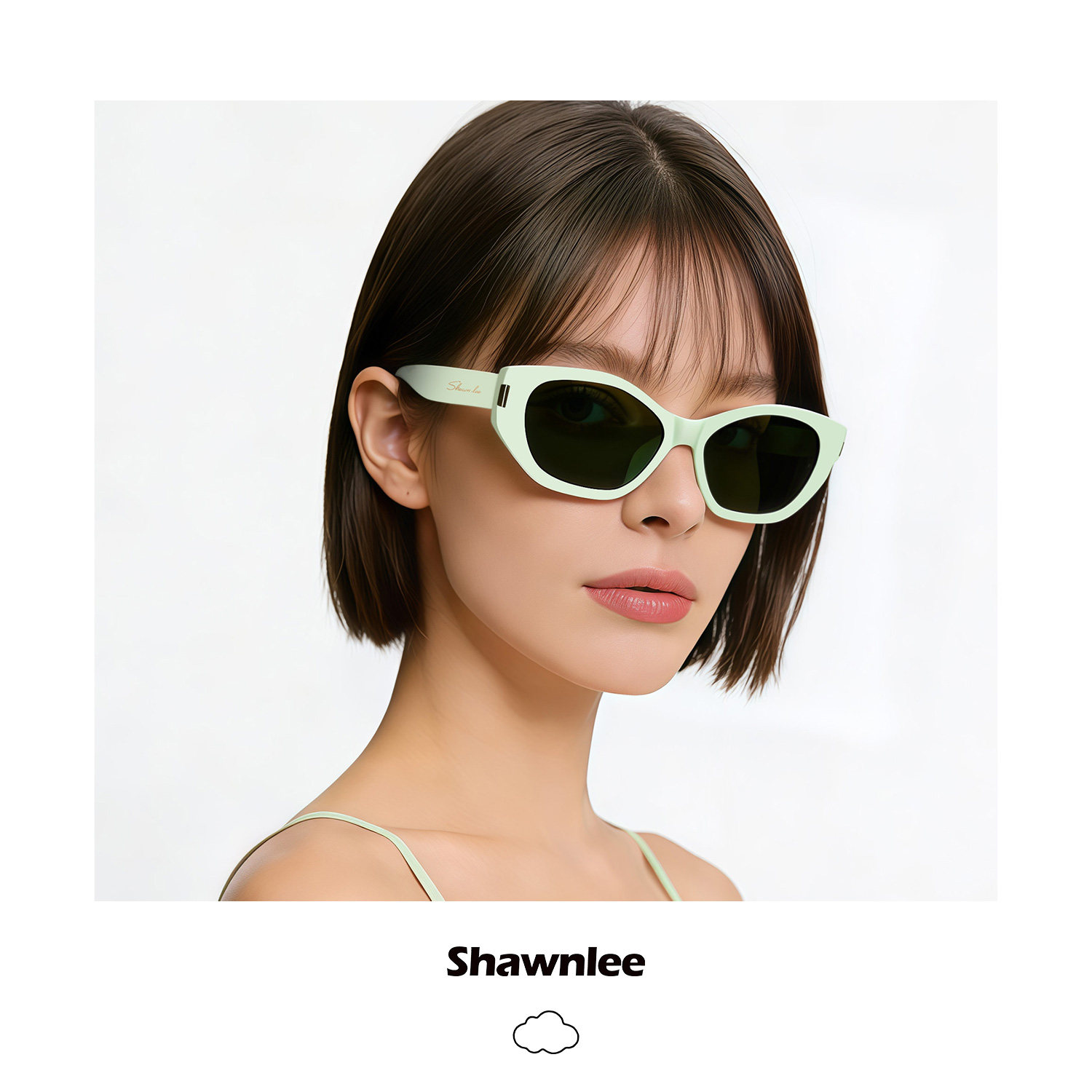 Shawnlee新款薄荷绿窄框墨镜小框猫眼复古太阳镜防晒遮阳镜高级感