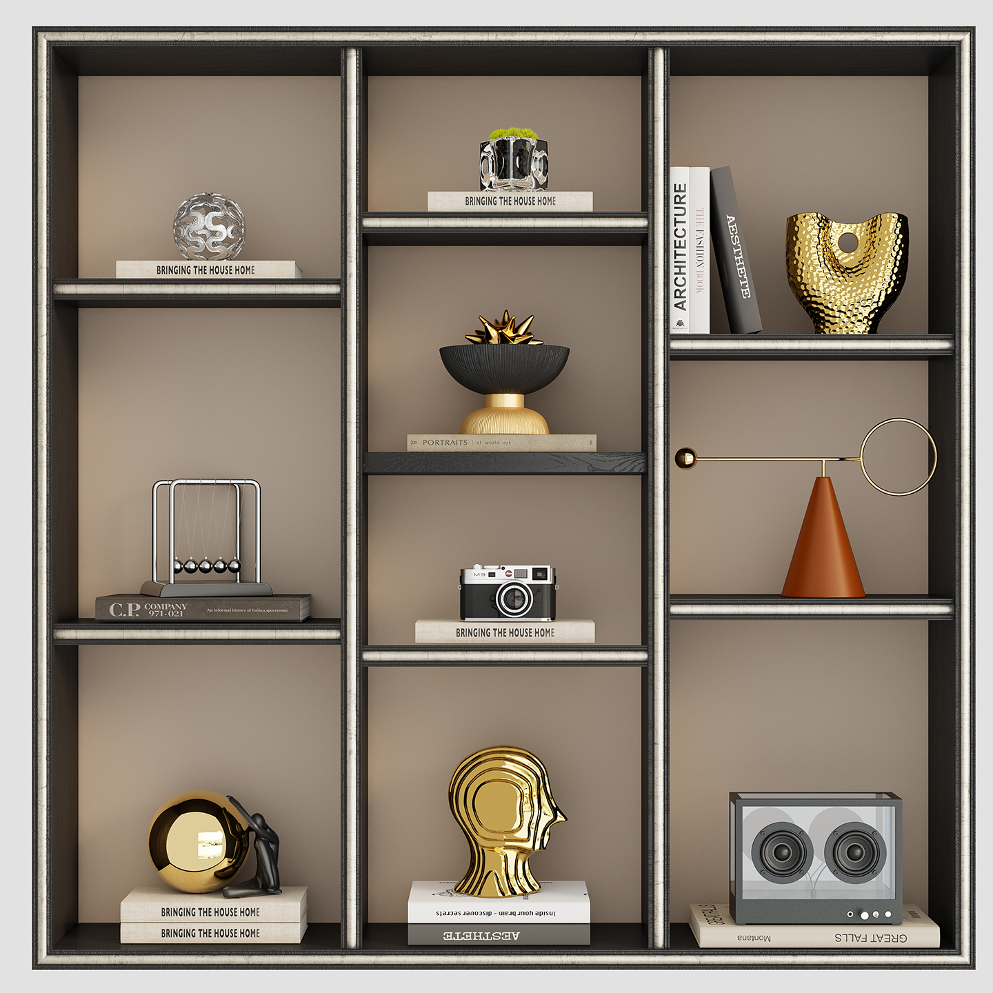 意式现代黑金艺术摆件轻奢别墅客厅样板房书柜壁龛酒柜高级感软装
