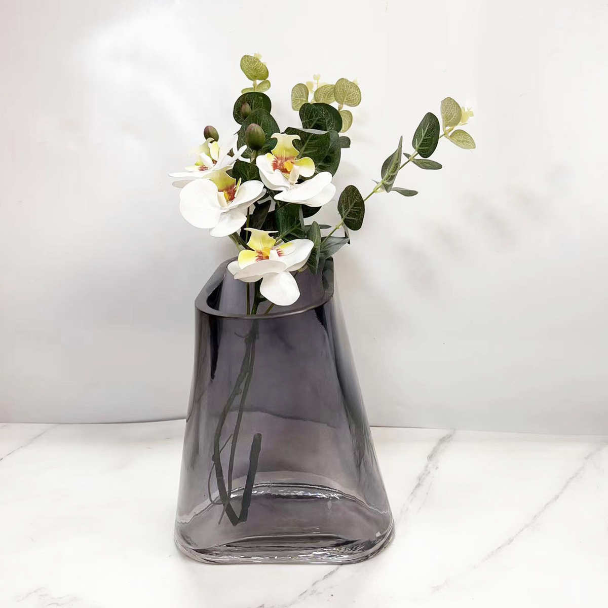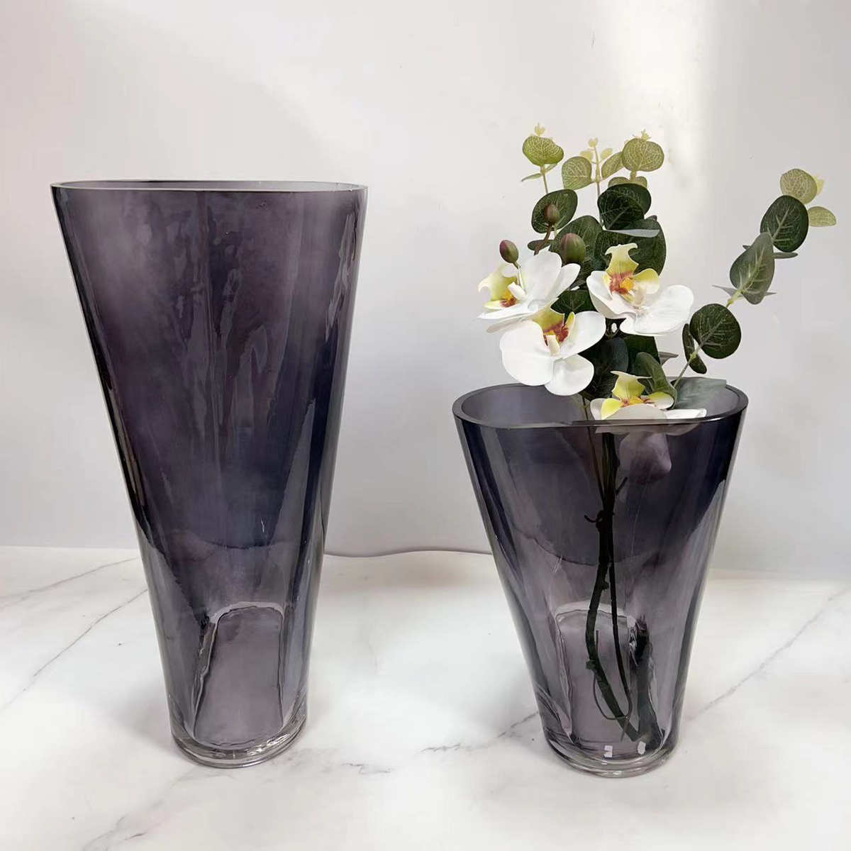 简约现代艺术烟灰玻璃插花器样板房间软装饰品家居玄关花瓶