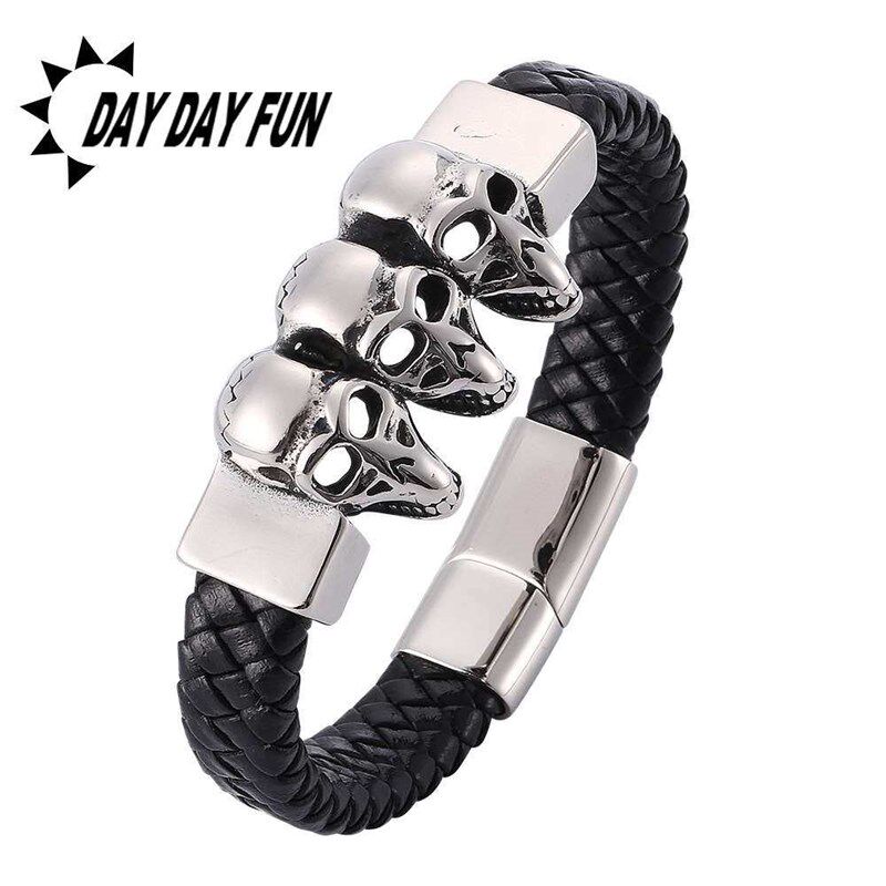 Accessories Woven 3 Skull Leather Brlet Titanium Steel Mens