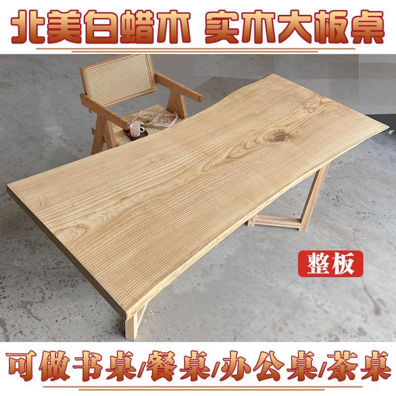 ft白蜡木实木大板餐桌茶桌办公电脑别墅岛台会议书桌茶几原木自然