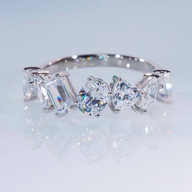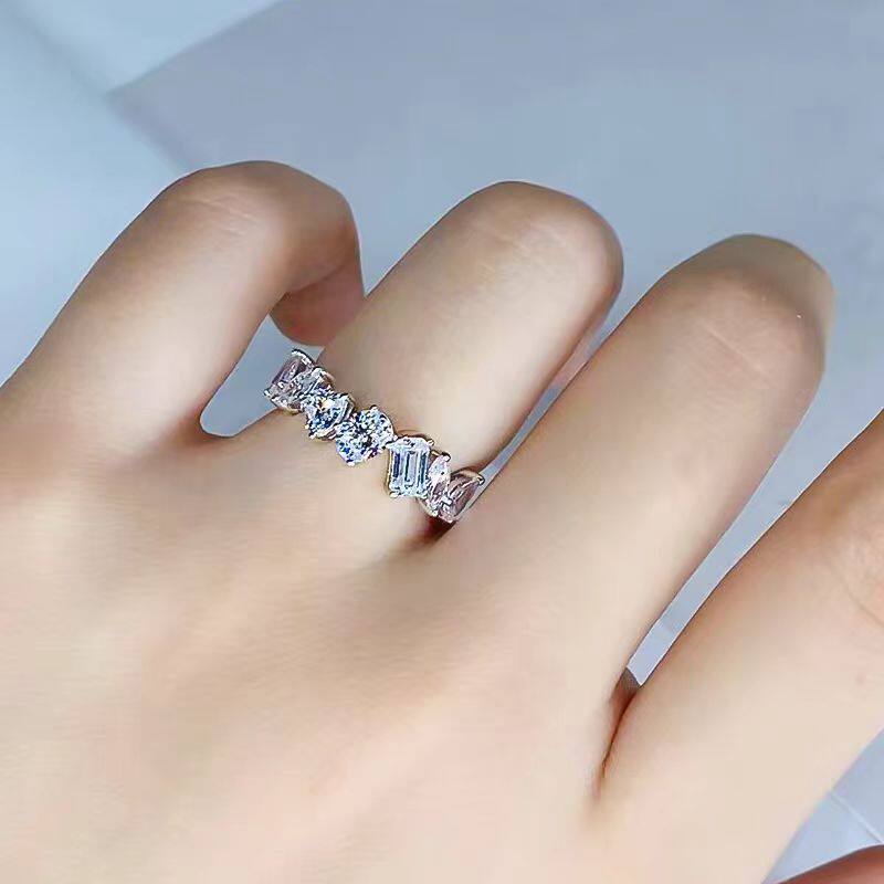 PT950铂金D色莫桑石满钻马眼异形戒指纯银个性排戒指环纯银时尚