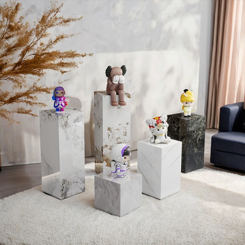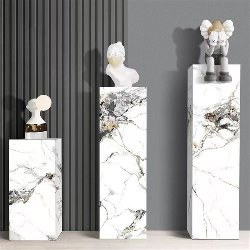 岩板花架客e厅落地一体酒店会所玄关装饰摆件大理石底座展示台立