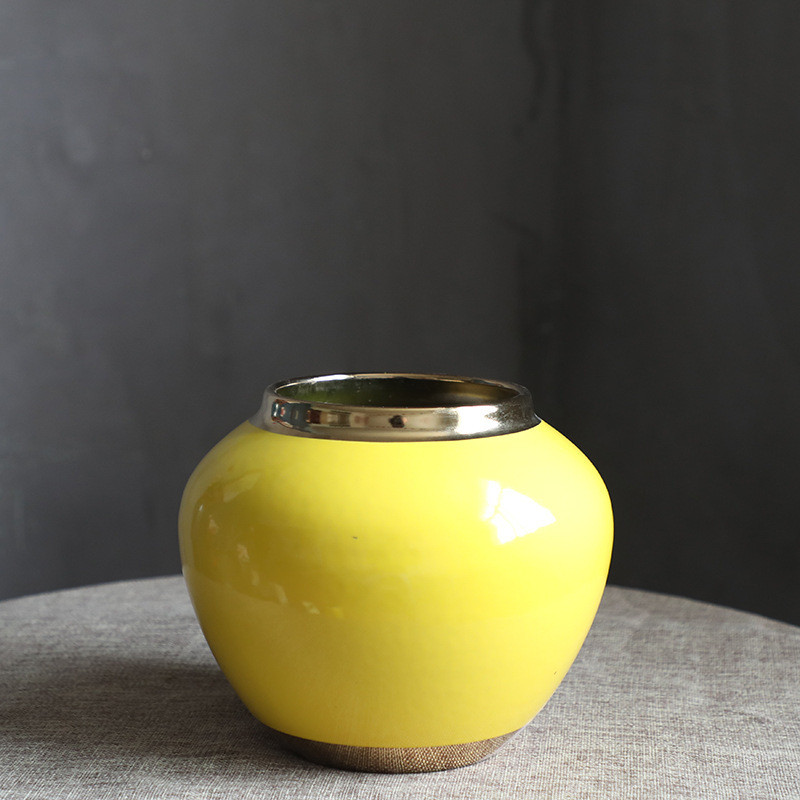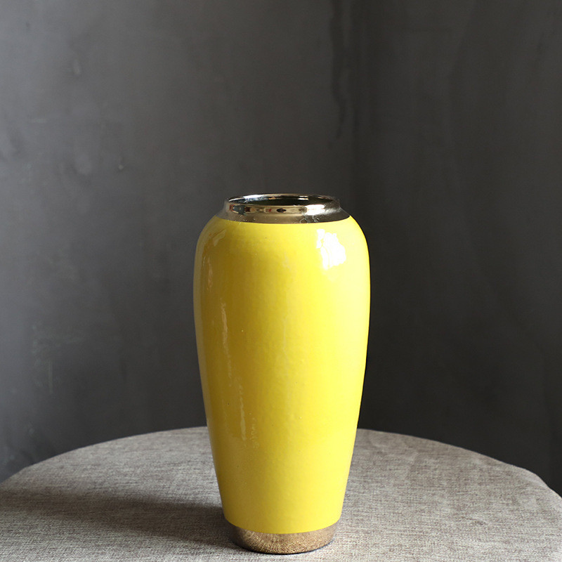 新中式轻奢酒店陶瓷花瓶三件套陶瓷工艺品电镀软装装饰摆件批发