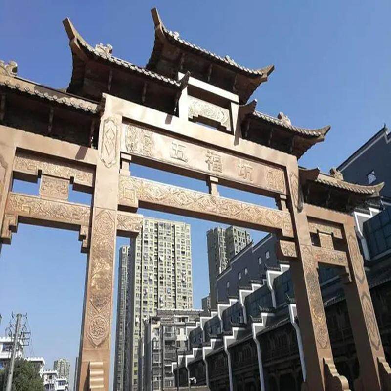 古铜铜牌坊新中式金属门头不锈钢铸铜牌坊牌楼