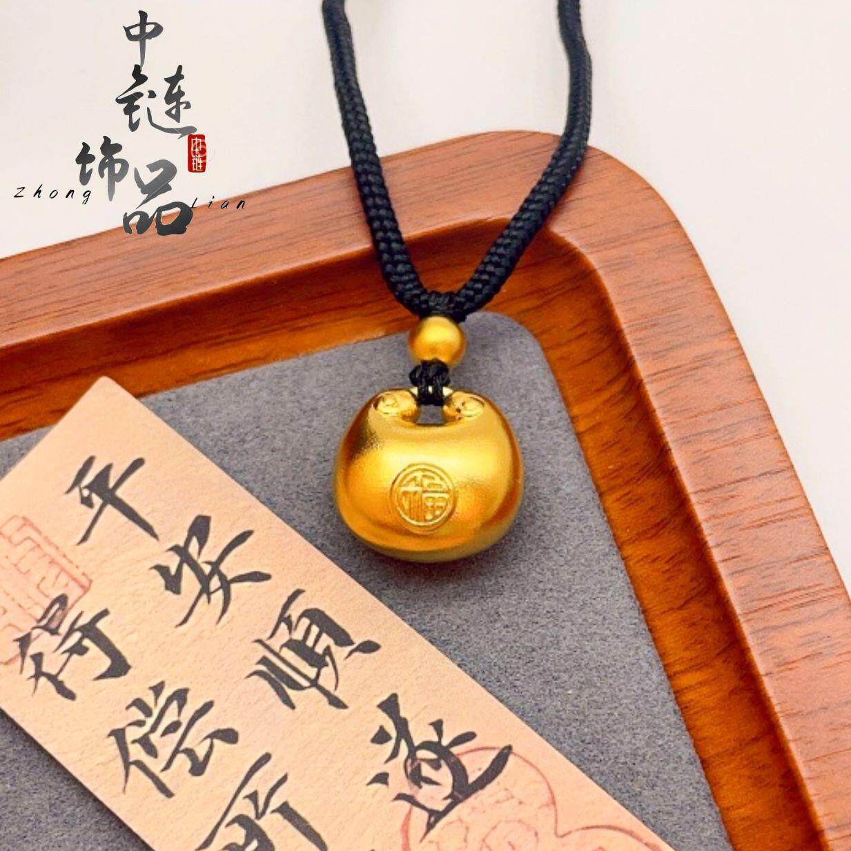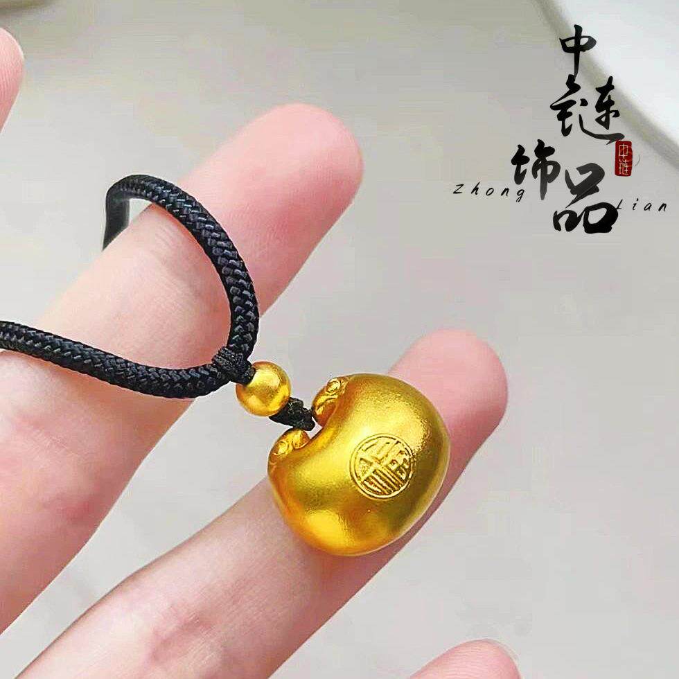 越南沙金高保色仿黄金小胖福吊坠古法磨砂小金坨福字锁包黑绳项链