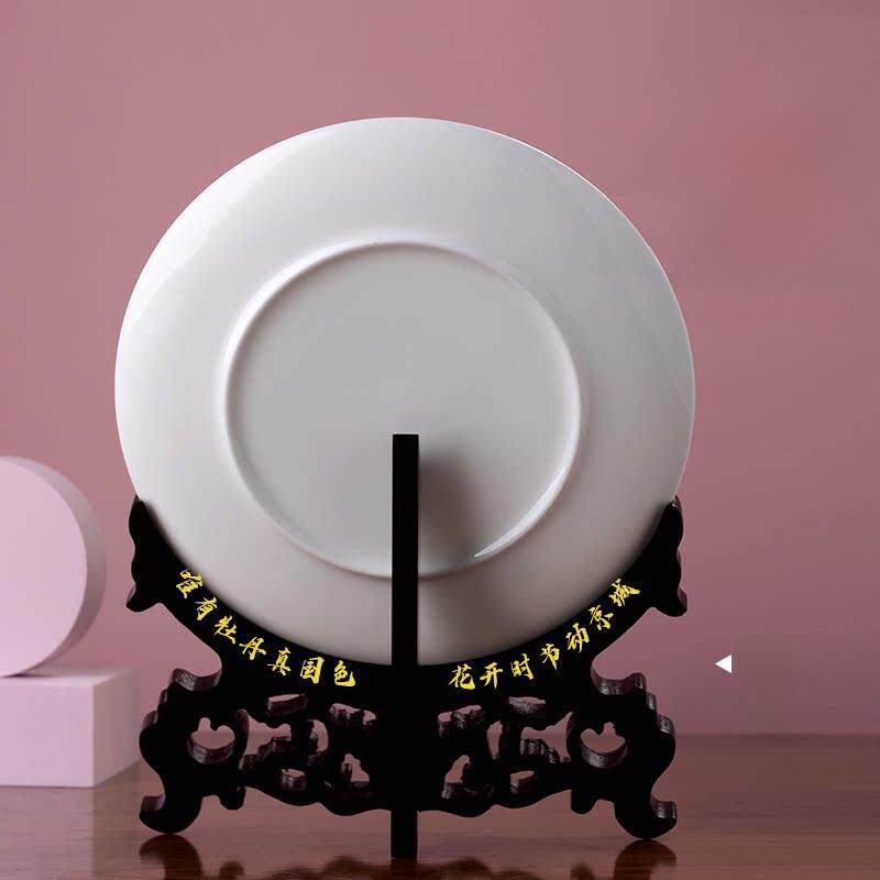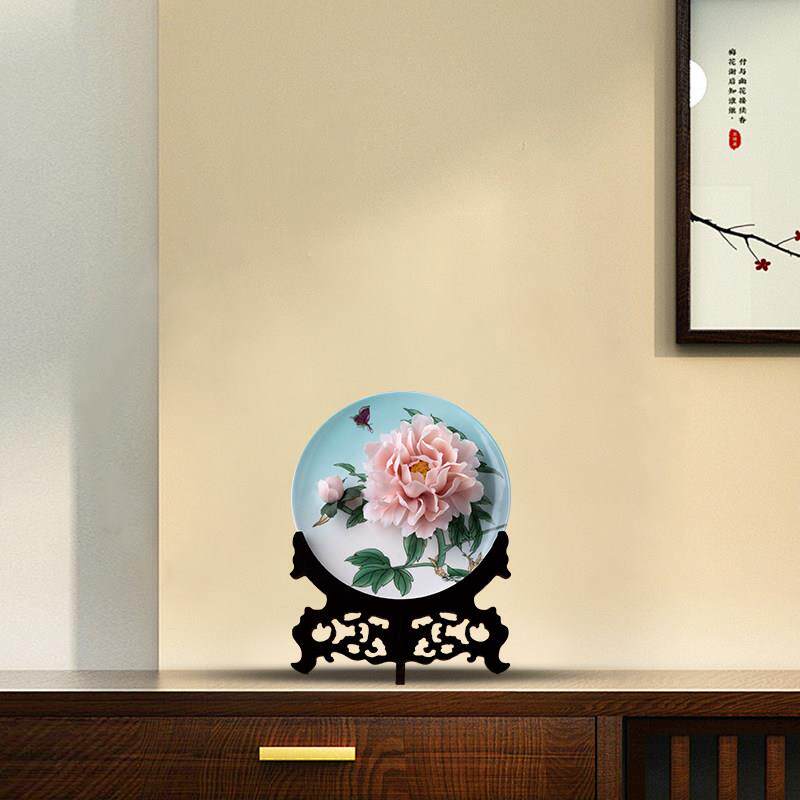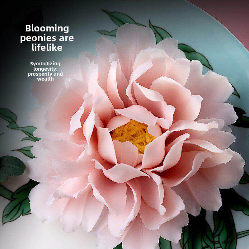 粉红色戴美人牡丹花陶瓷挂盘瓷花装饰品客厅家庭办公室酒柜装饰礼