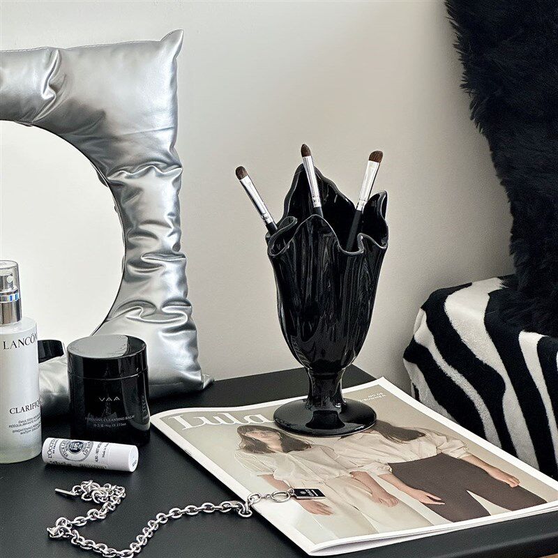 鱼寓/高级感化妆刷收纳筒桌面创意笔筒陶瓷小众家用装饰摆件