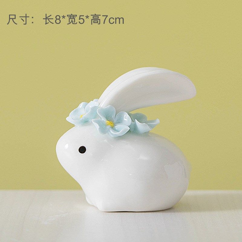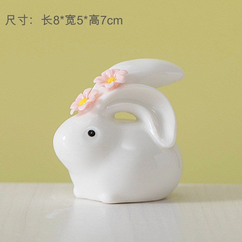 桌面陶瓷兔子茶宠可爱全瓷小兔子家居客厅书桌茶桌小摆件装饰品