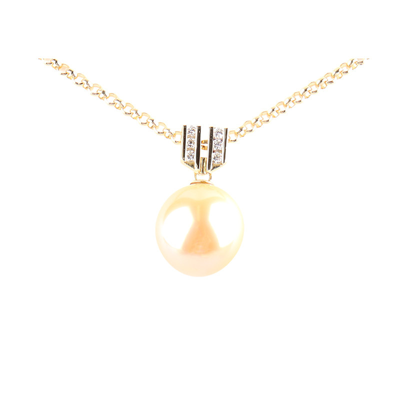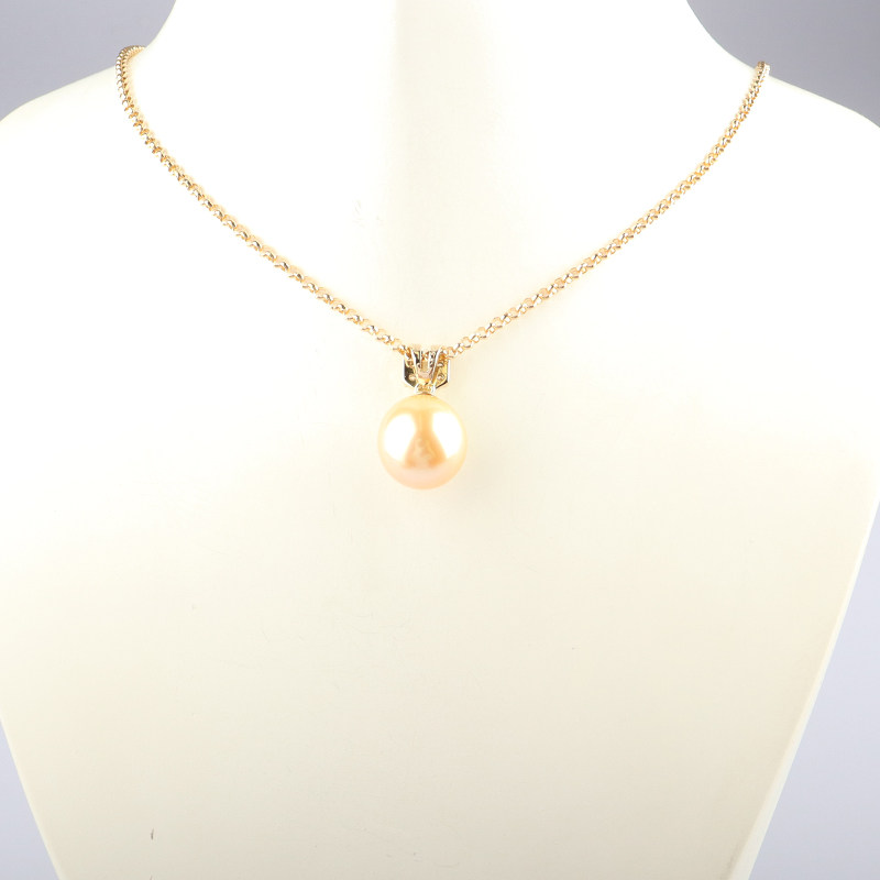 中古「95新」日本进口黄色南洋珍珠钻石K18黄金42 45cm项链高级