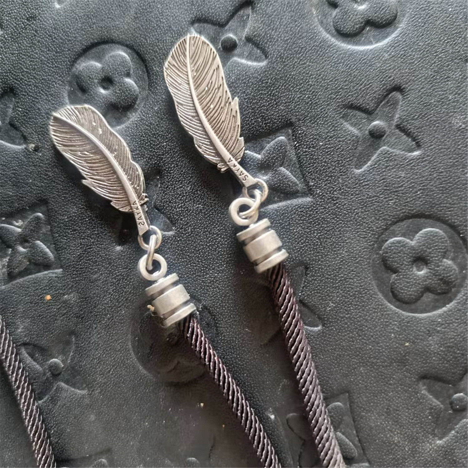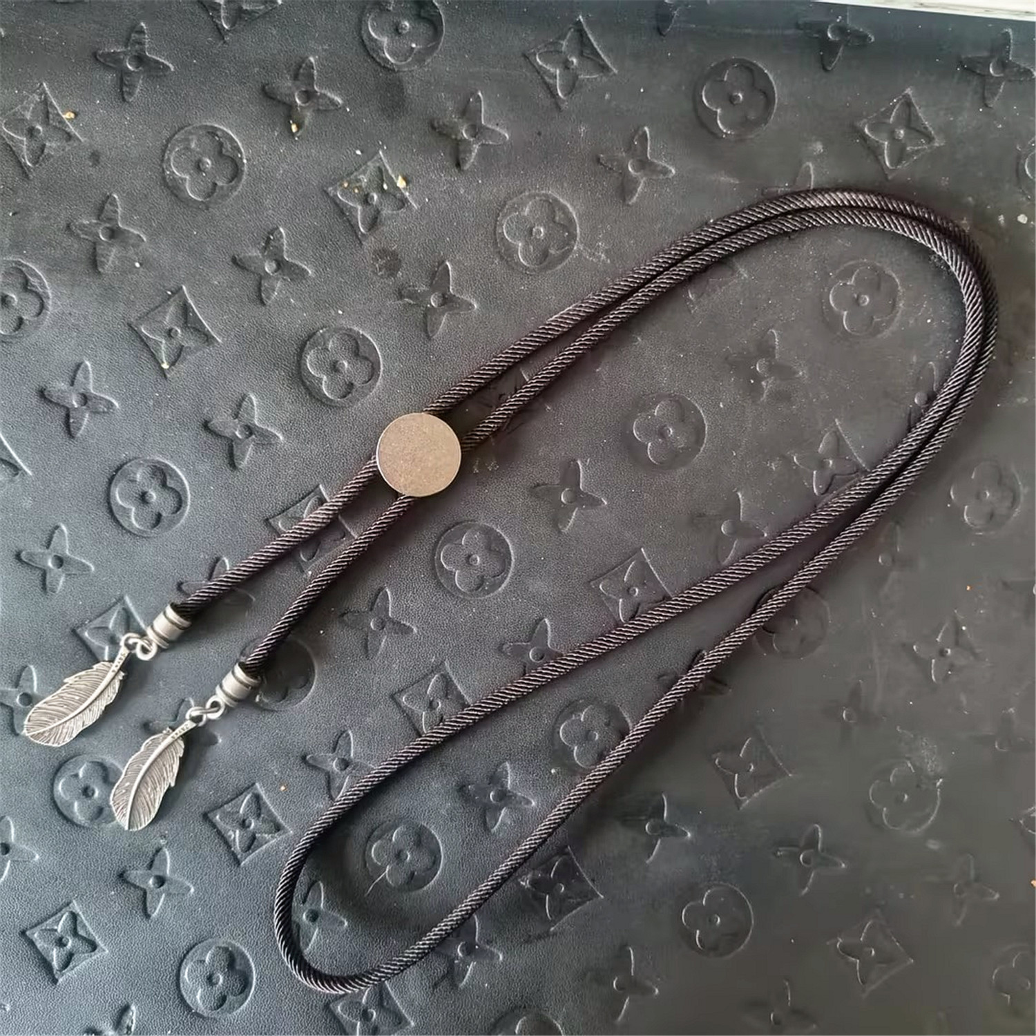 20mm银色平底深咖色绳bolotie波洛领带diy配件金属滑卡扣手工羽毛