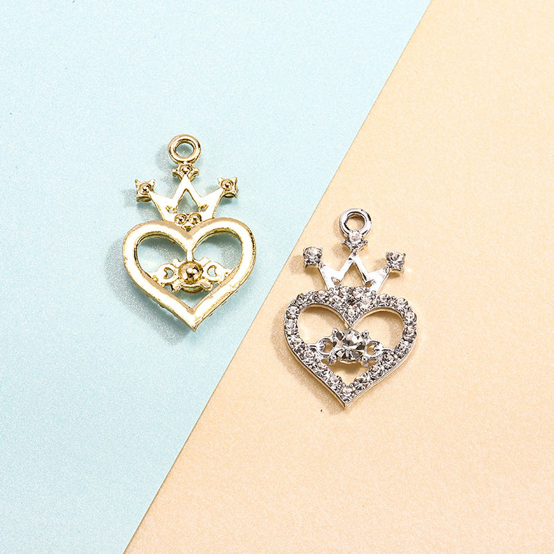 皇冠配饰挂件心形镶钻吊坠欧美热销合金diy饰品配件项链手链服饰