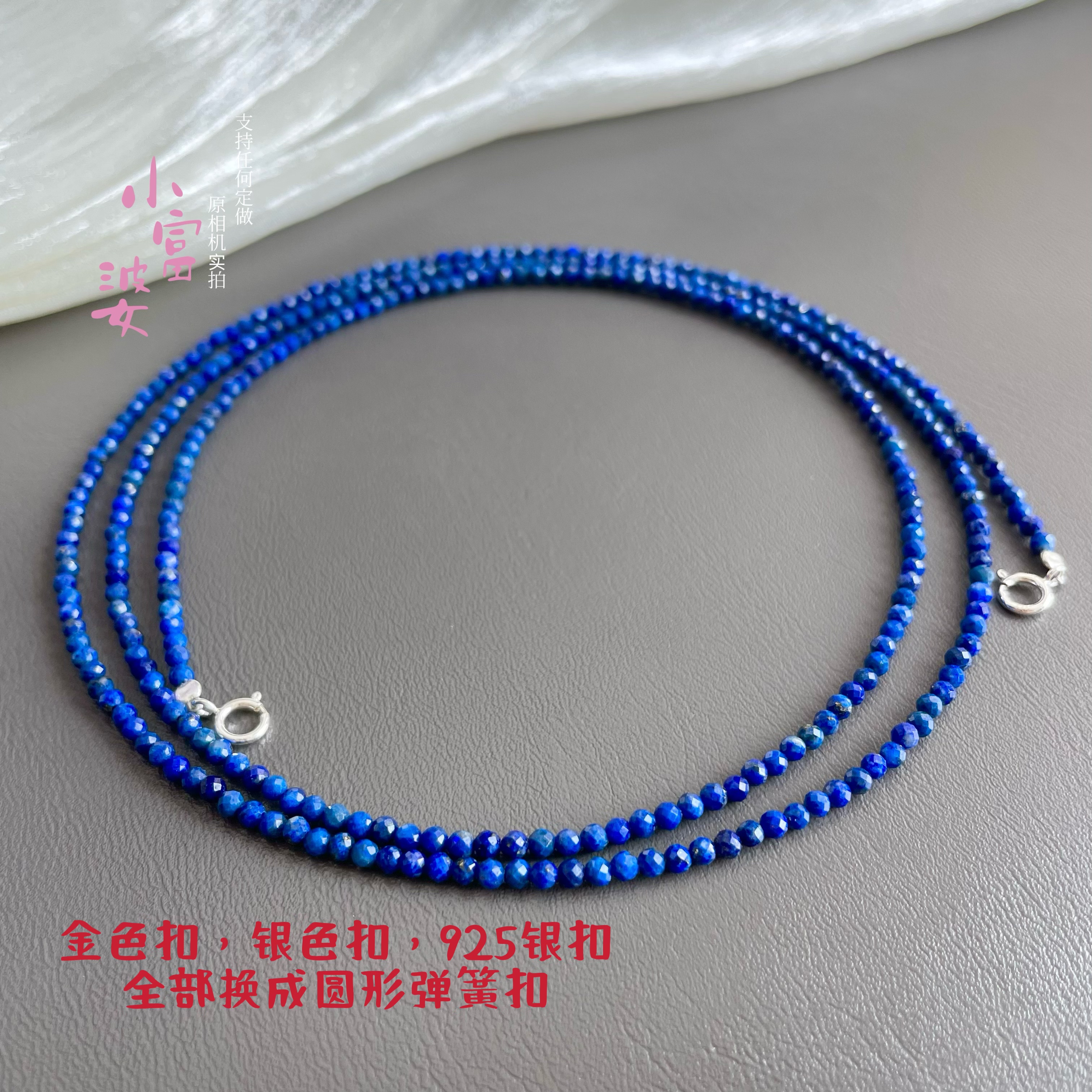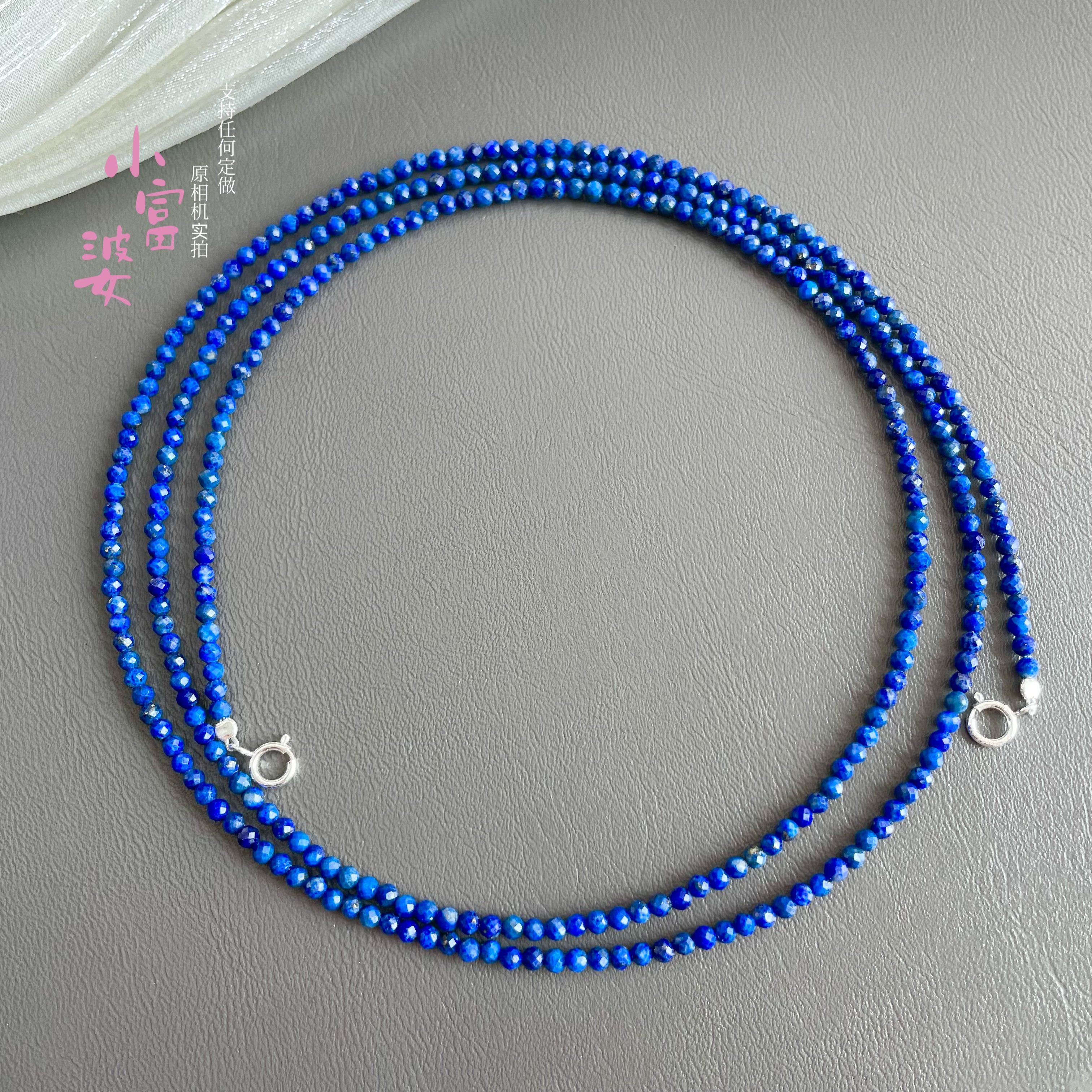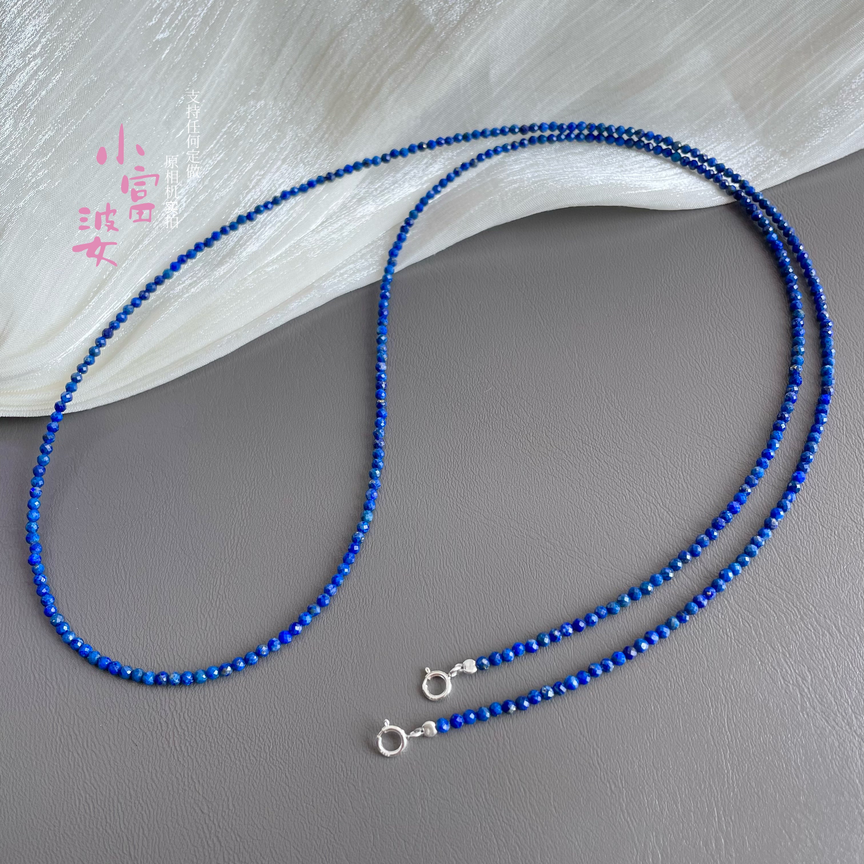 客定极细2mm蓝色7A级无白金天然青金石毛衣链眼睛链无皮筋女项链