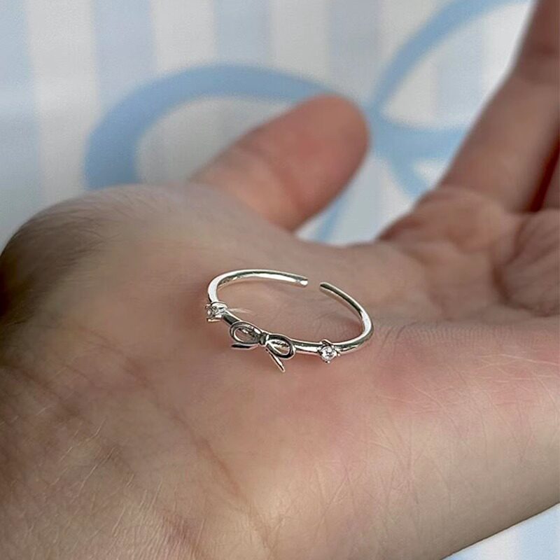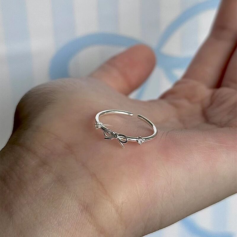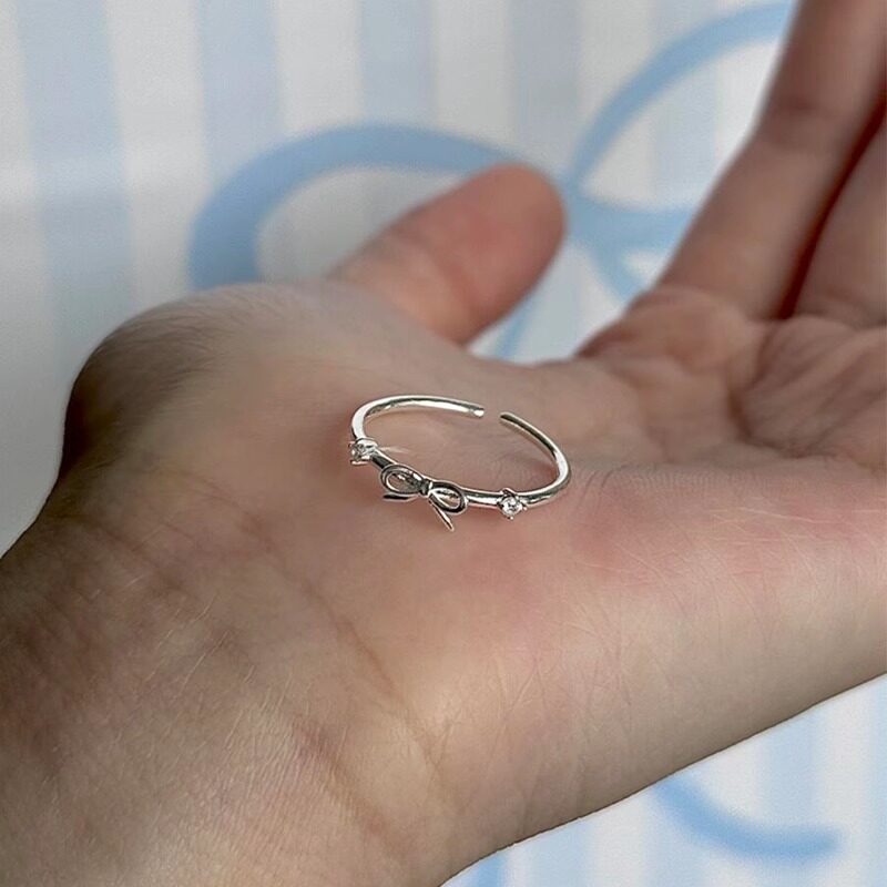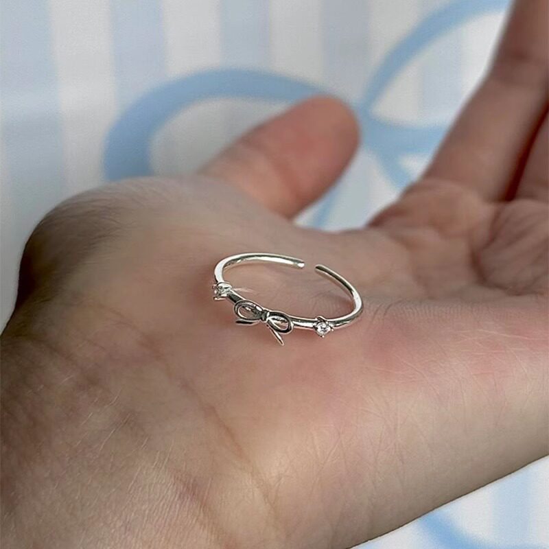银色微镶蝴蝶结戒指女2026新款爆款指环轻奢小众设计高级感食指戒