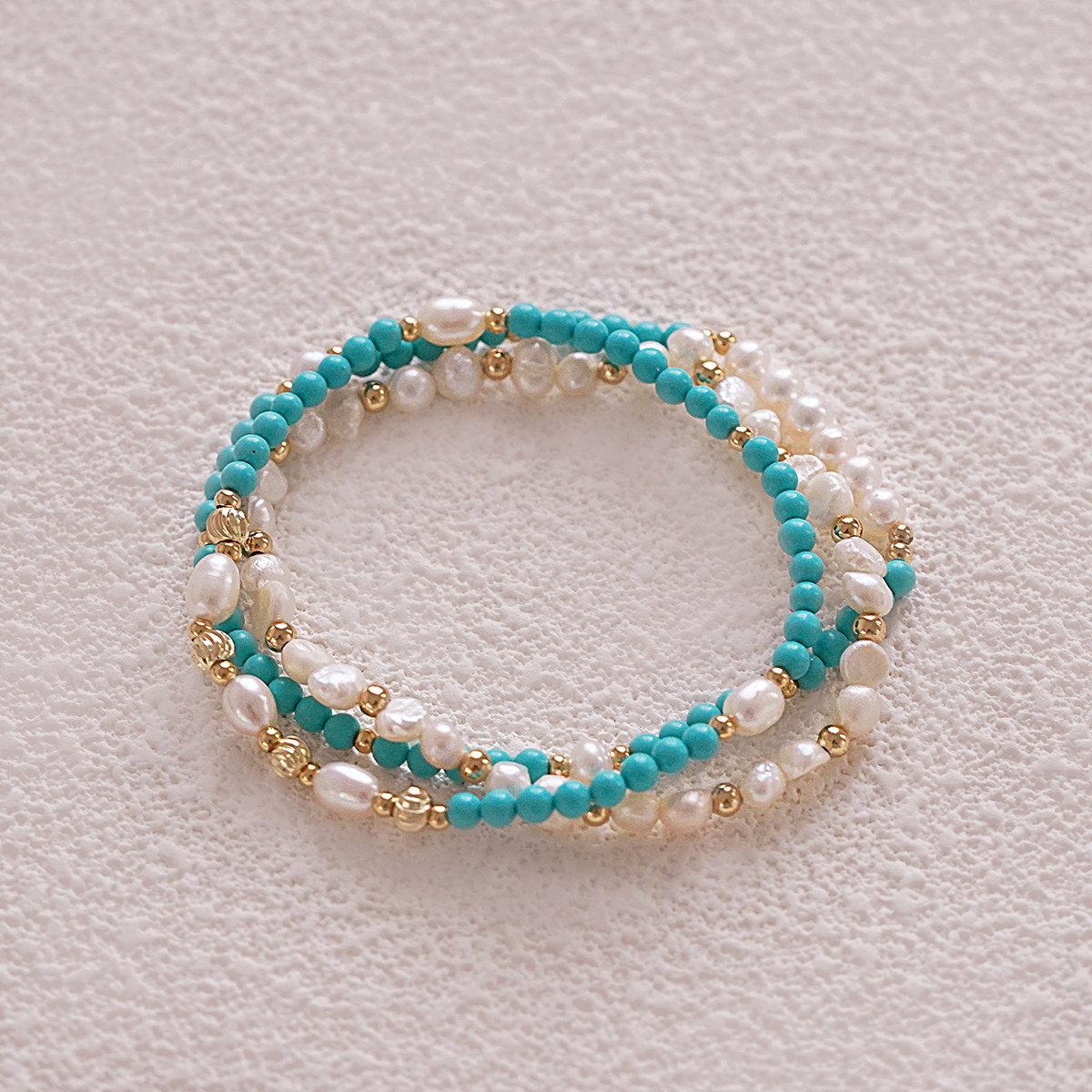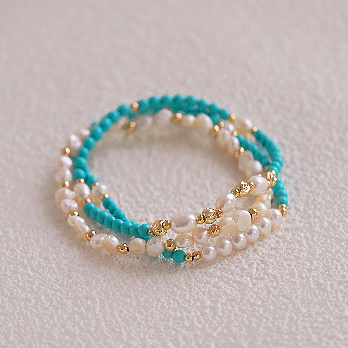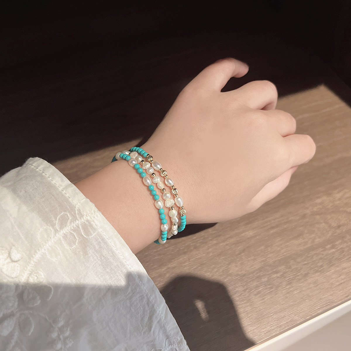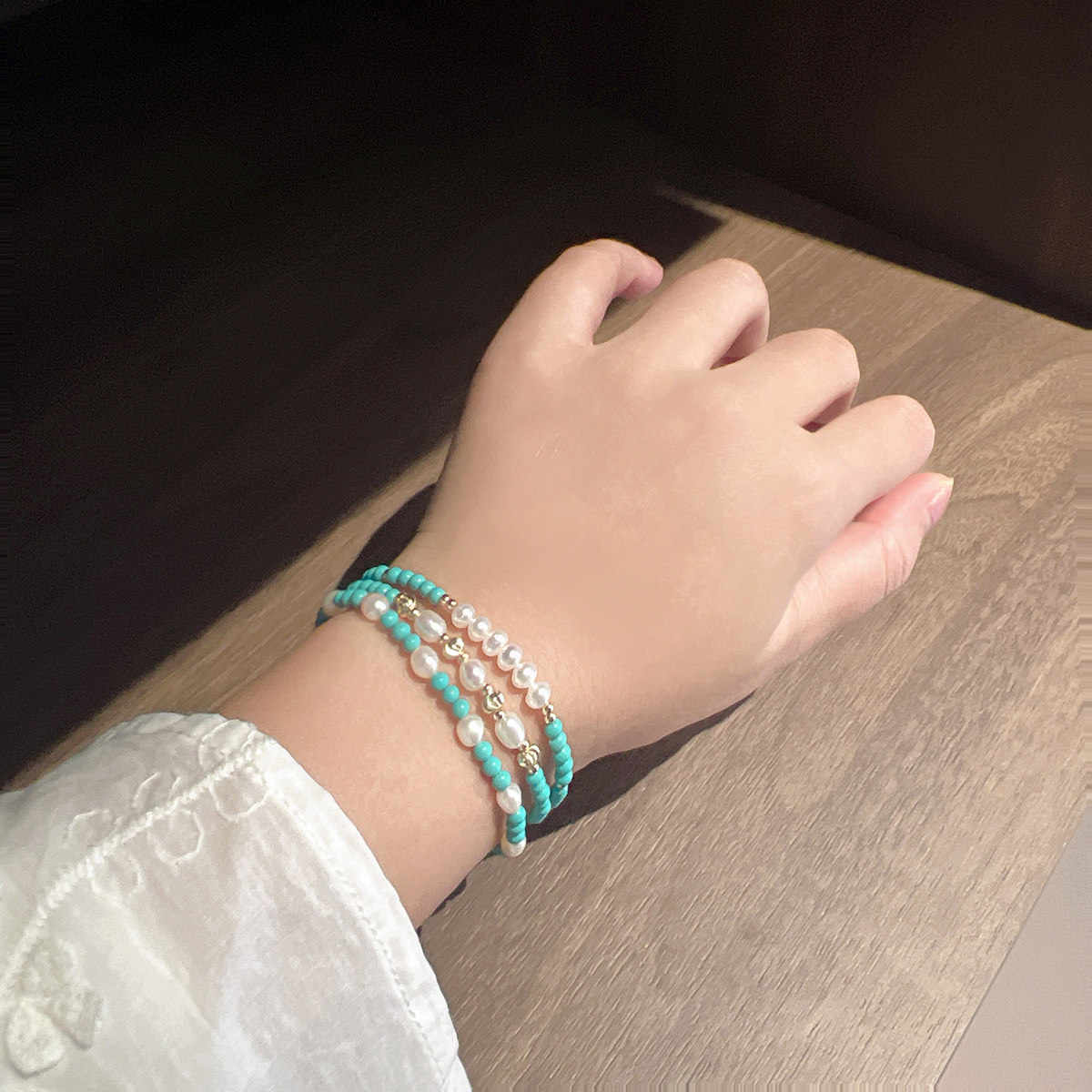 高级感小众轻奢天然淡水珍珠手链简约叠戴小米珠绿松石设计感手串