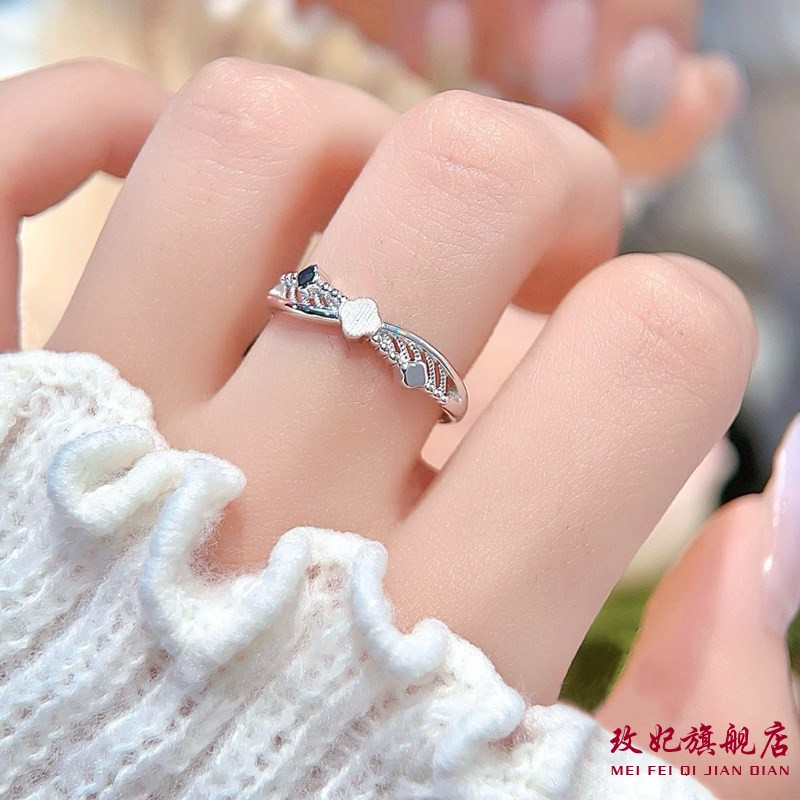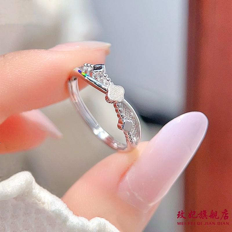 香港正生s925纯银戒指双层幸运四叶草食指戒女百搭时尚轻奢高级感