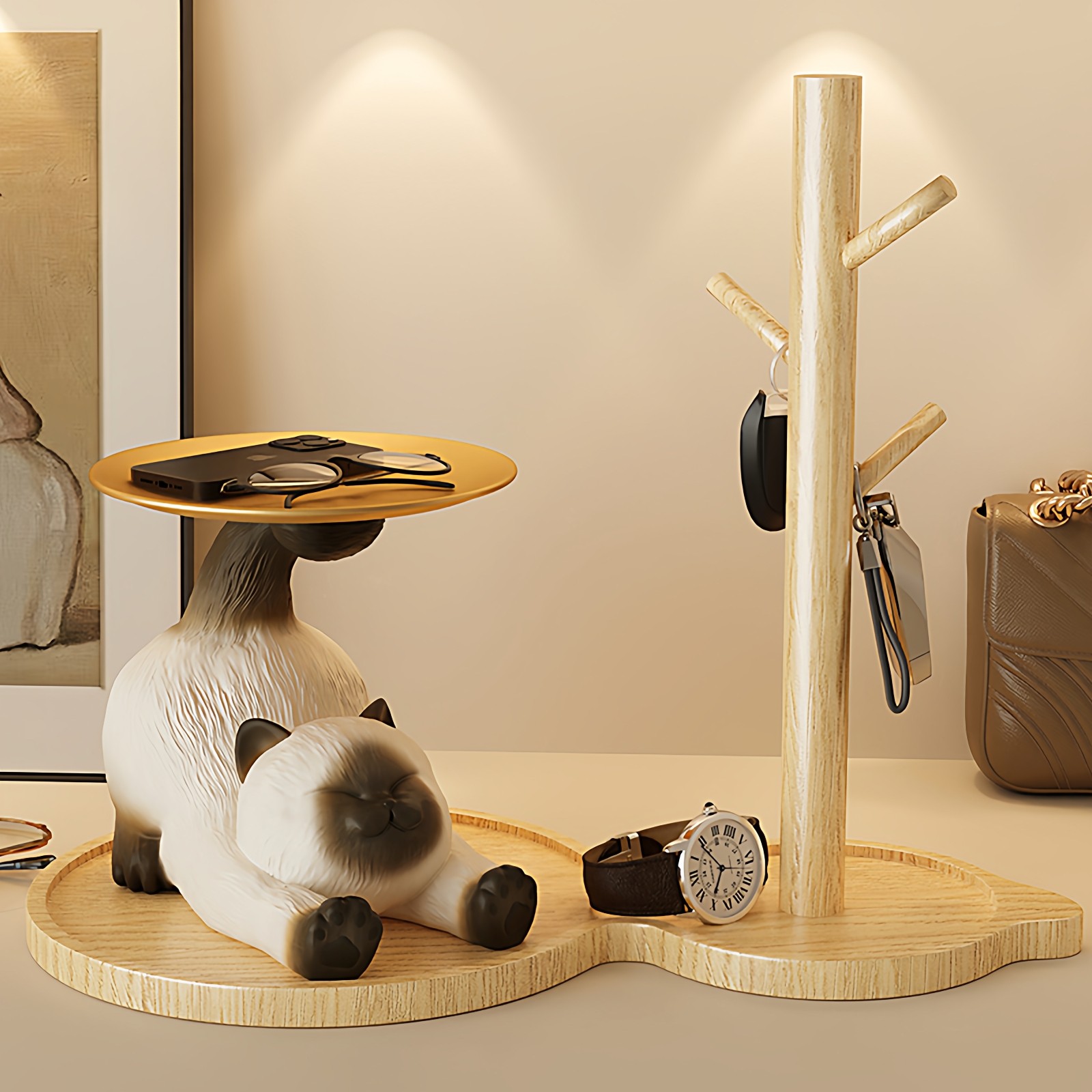 暹罗猫玄关钥匙收纳摆件置物架客厅装饰品生日搬家新家乔迁礼物