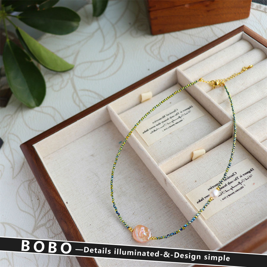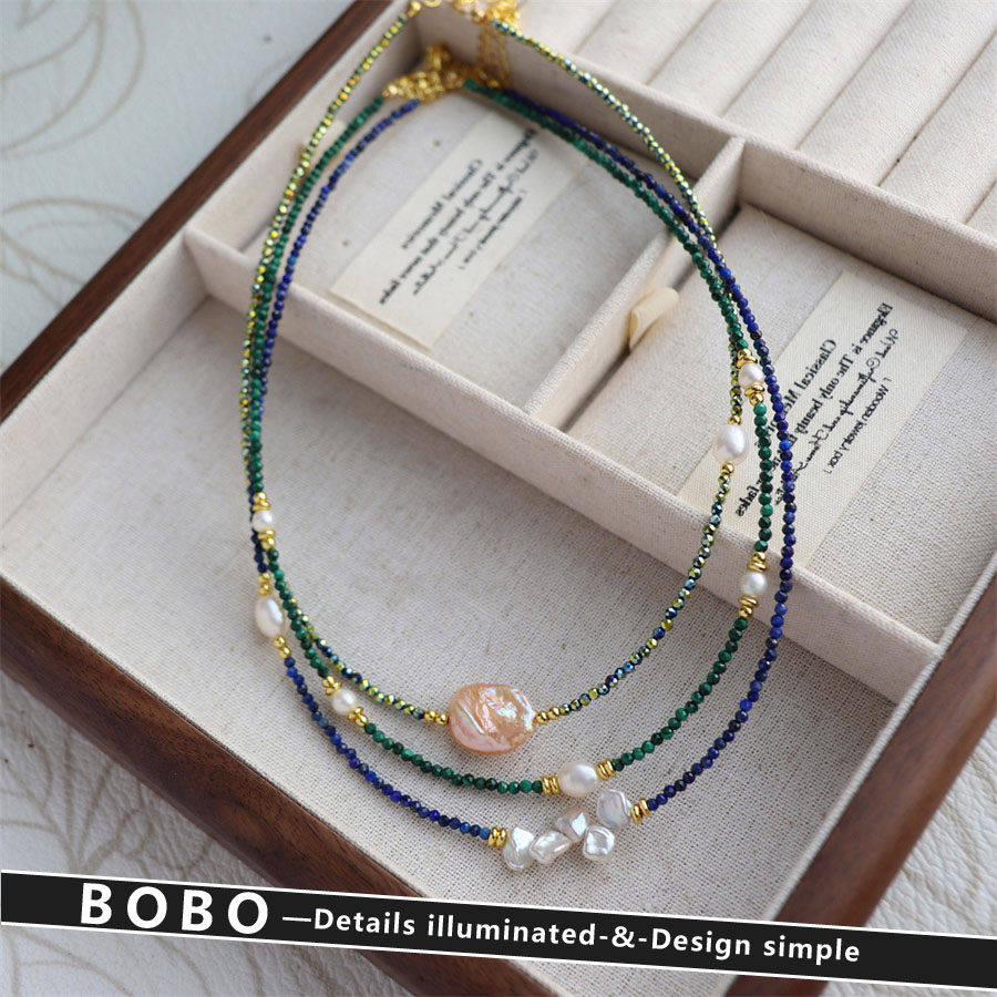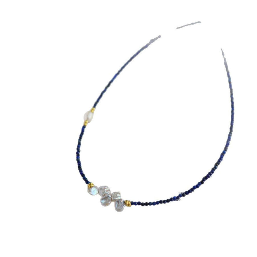 超仙蓝色孔雀石淡水珍珠项链女温柔设计感个性花瓣锁骨链颈链