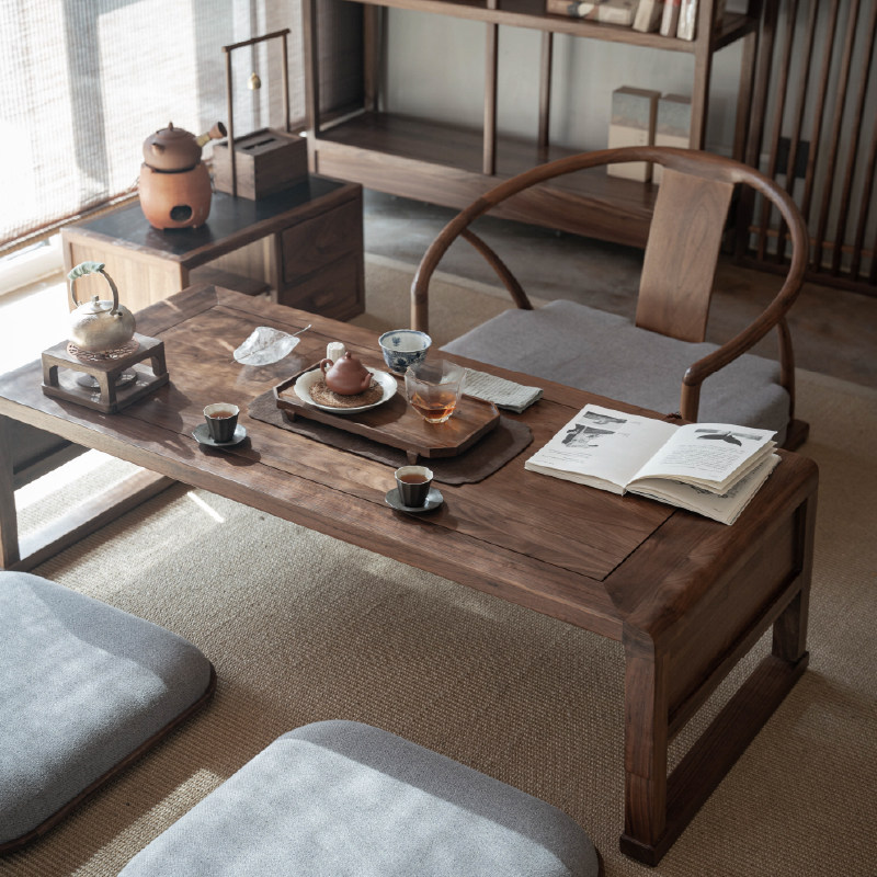 新中式席地茶桌黑胡桃实木禅意榻榻米阳台茶室茶桌椅家具组合