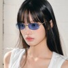 feytiy 中古无框太阳镜jennie同款蓝色墨镜 时髦方形小脸遮阳眼镜