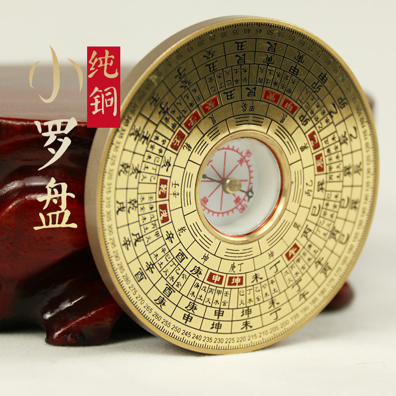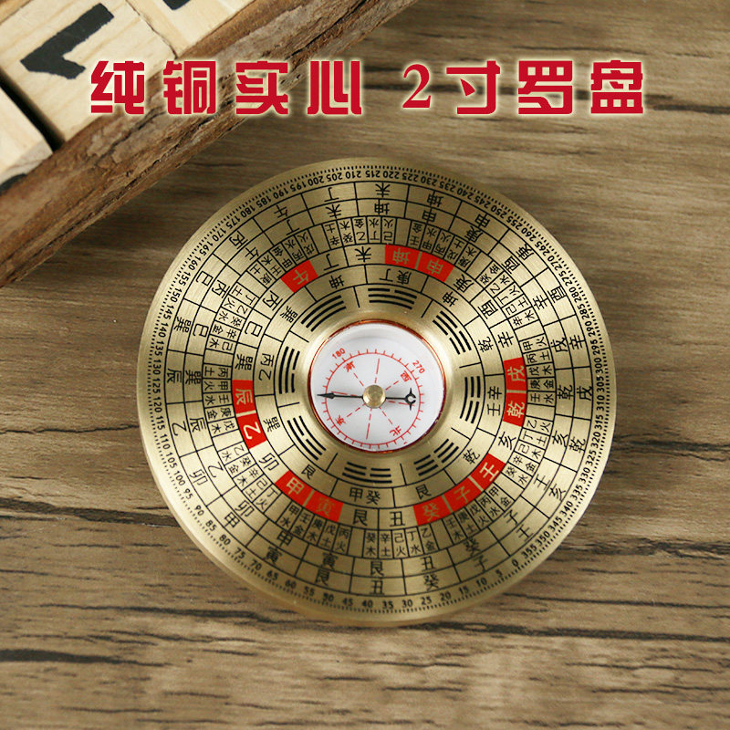 铜之心旗舰店罗盘风水高精度随身携带迷你袖珍八卦小罗盘二寸黄铜