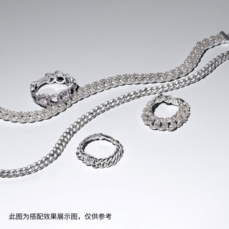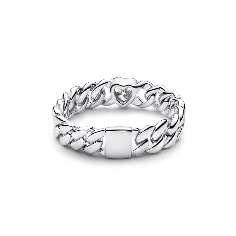 Pandora潘多拉心形古巴链戒指金色银色对戒情侣同款
