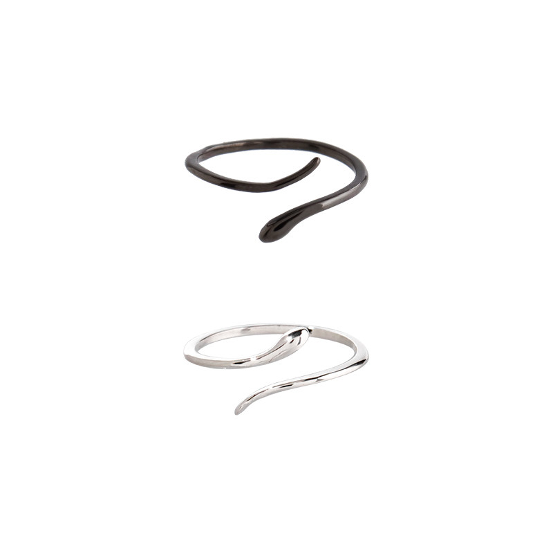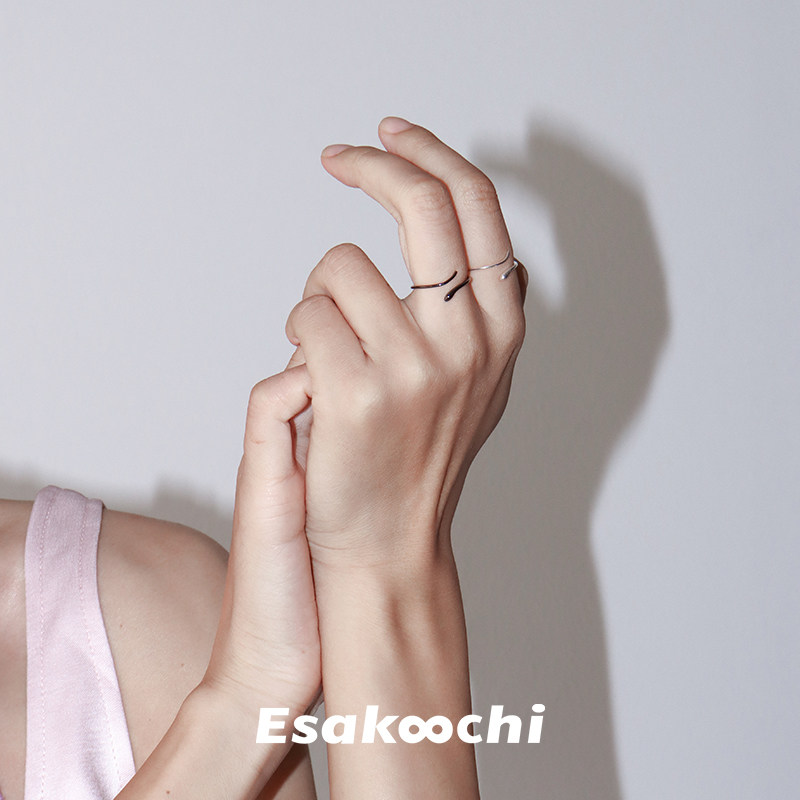 Esakoochi假装有个纹身~黑色小蛇线条设计感戒指情侣指环