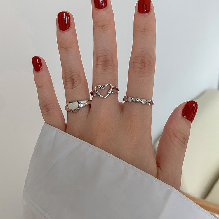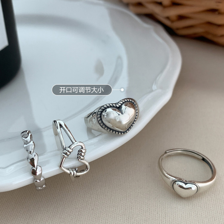 S925纯银冷淡风镂空爱心戒指女轻奢高级感ins个性简约百搭食指戒