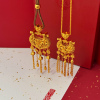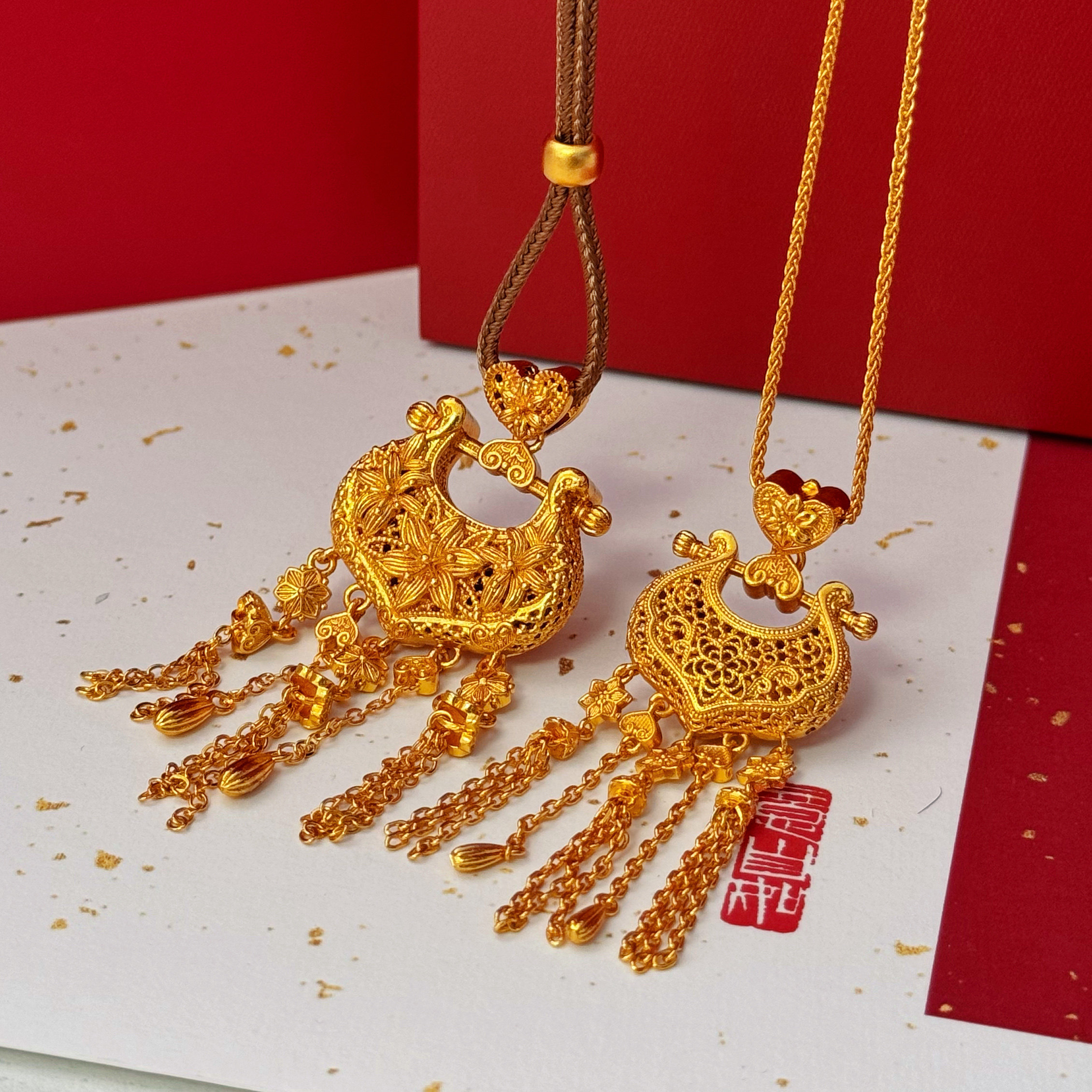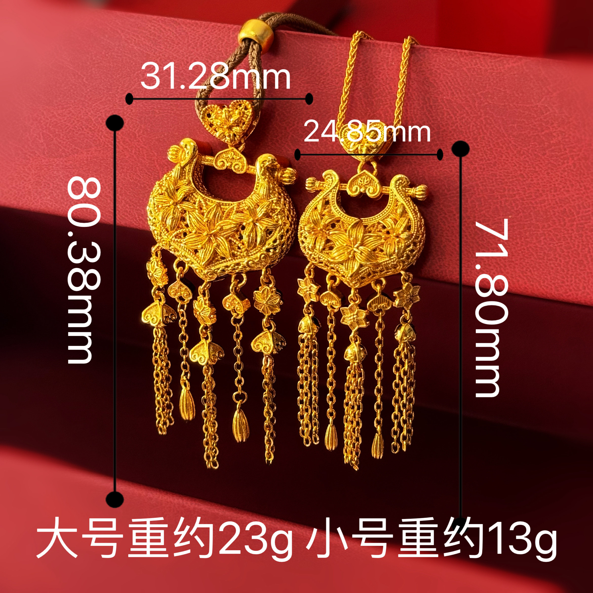 金店同款古法沙金锁愿百合花流苏锁包吊坠繁花婚嫁毛衣链送女友礼