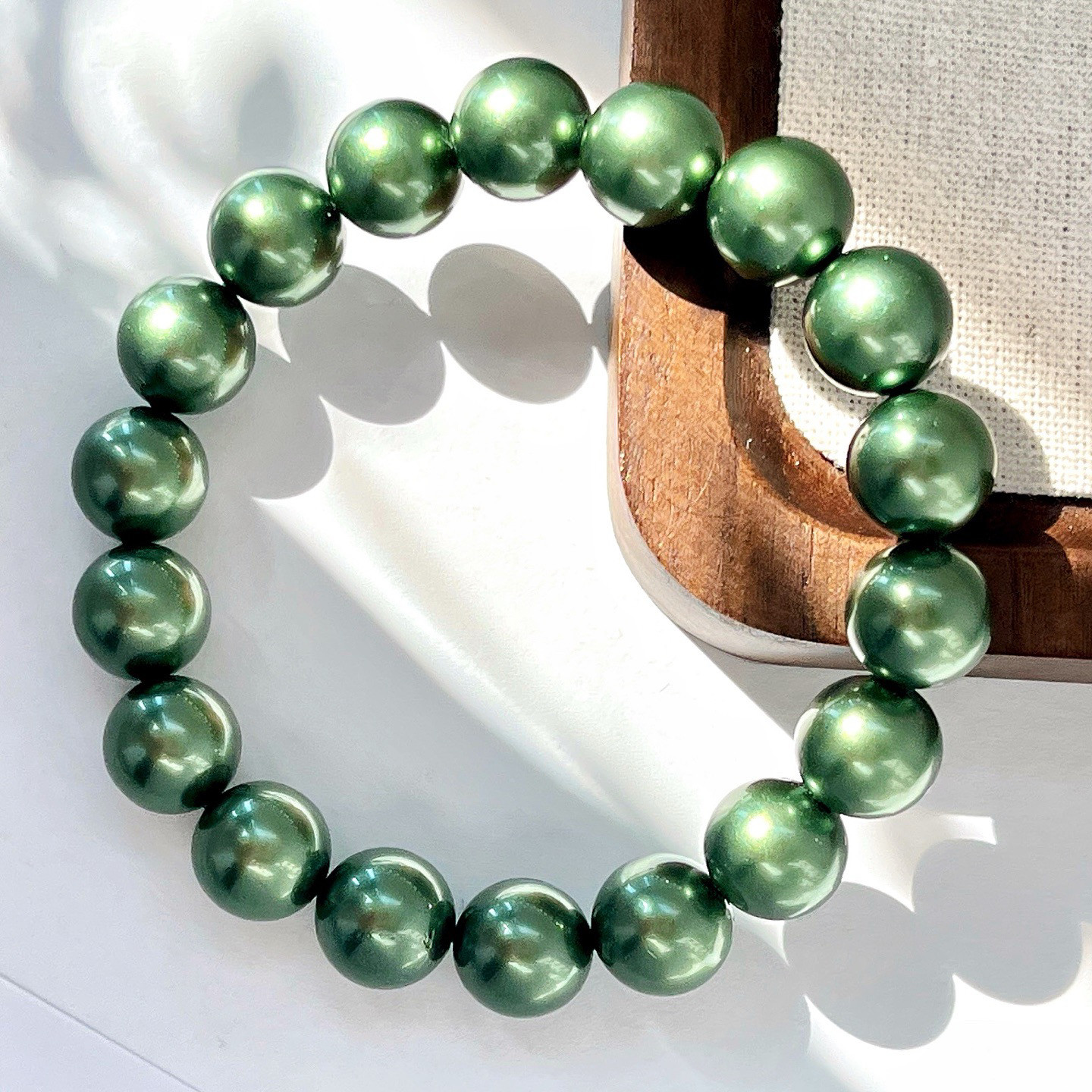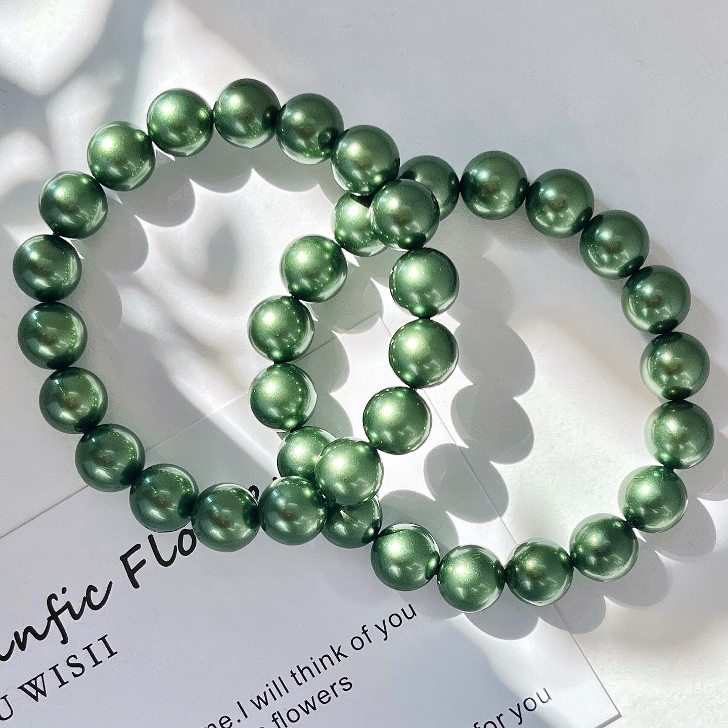 孔雀绿天然贝珠贝壳人造珍珠手链