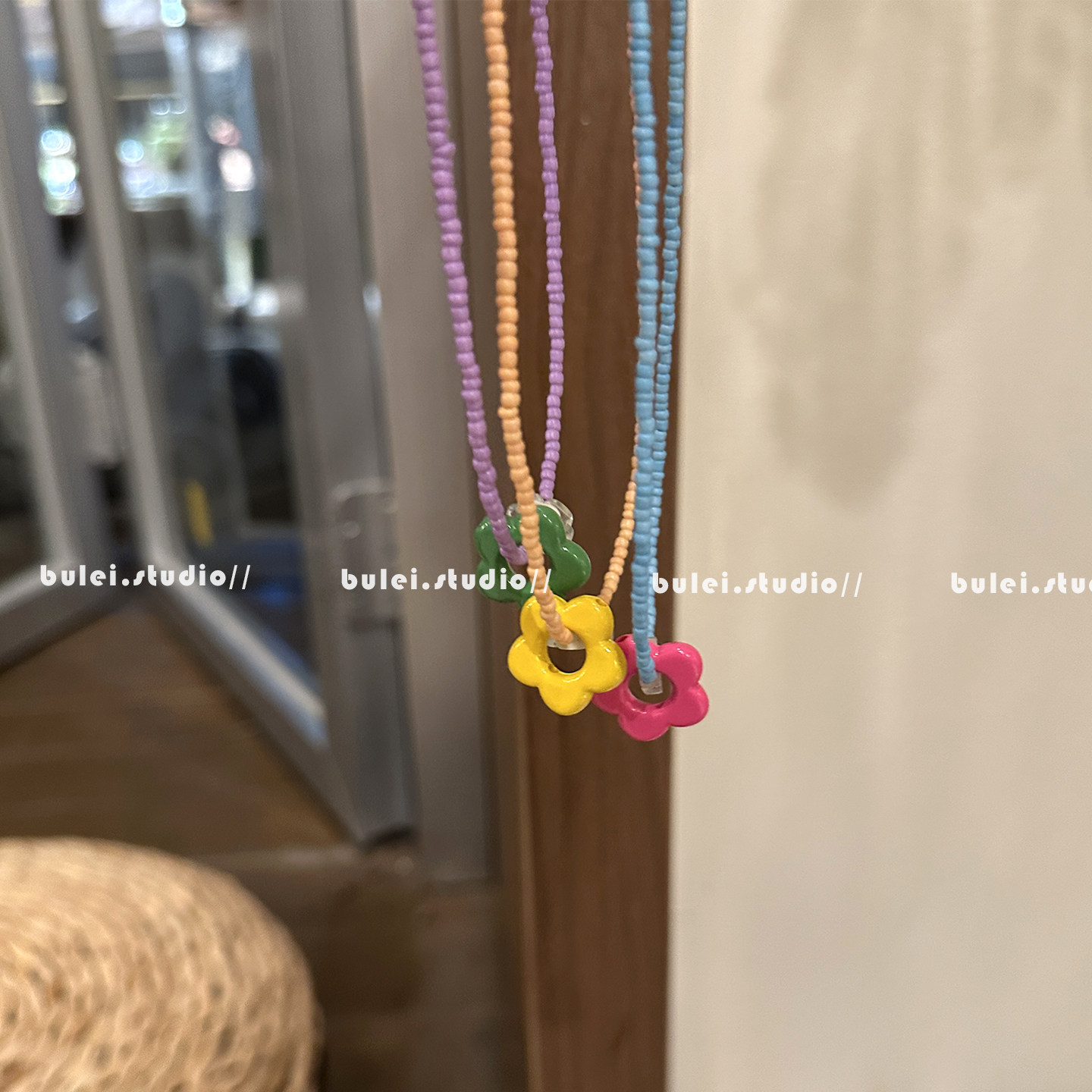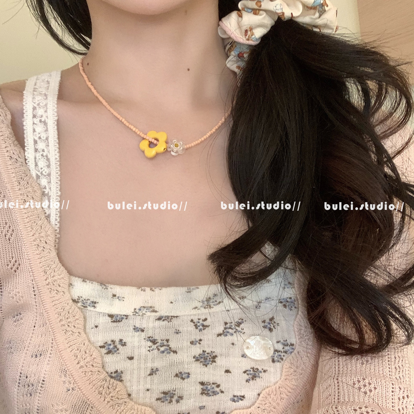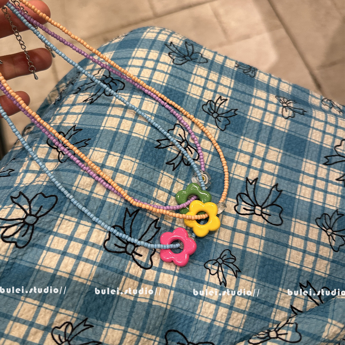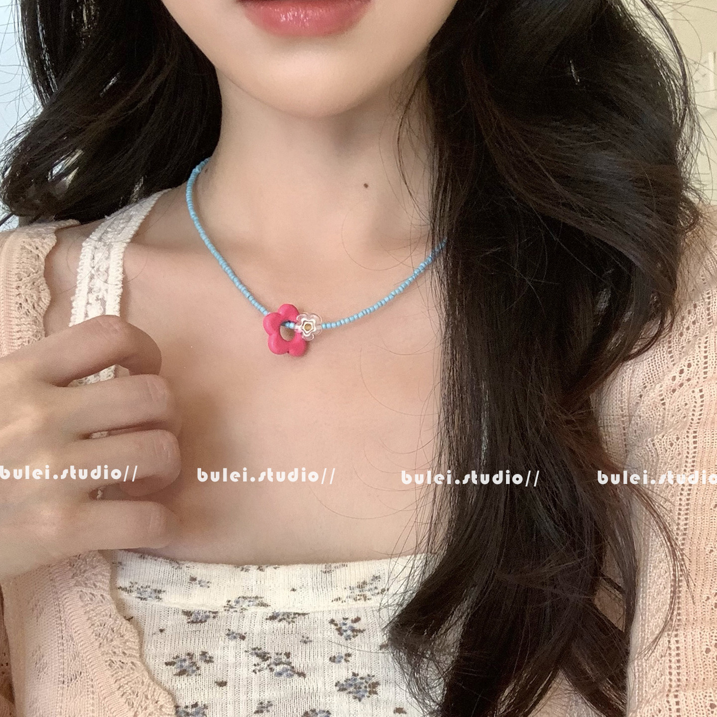 多巴胺女孩可爱亚克力撞色花朵彩色手工串珠儿童项链时尚锁骨链女