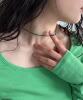 超细一条气质韩国设计师同款祖母绿色水晶气质小众水晶叠带项链