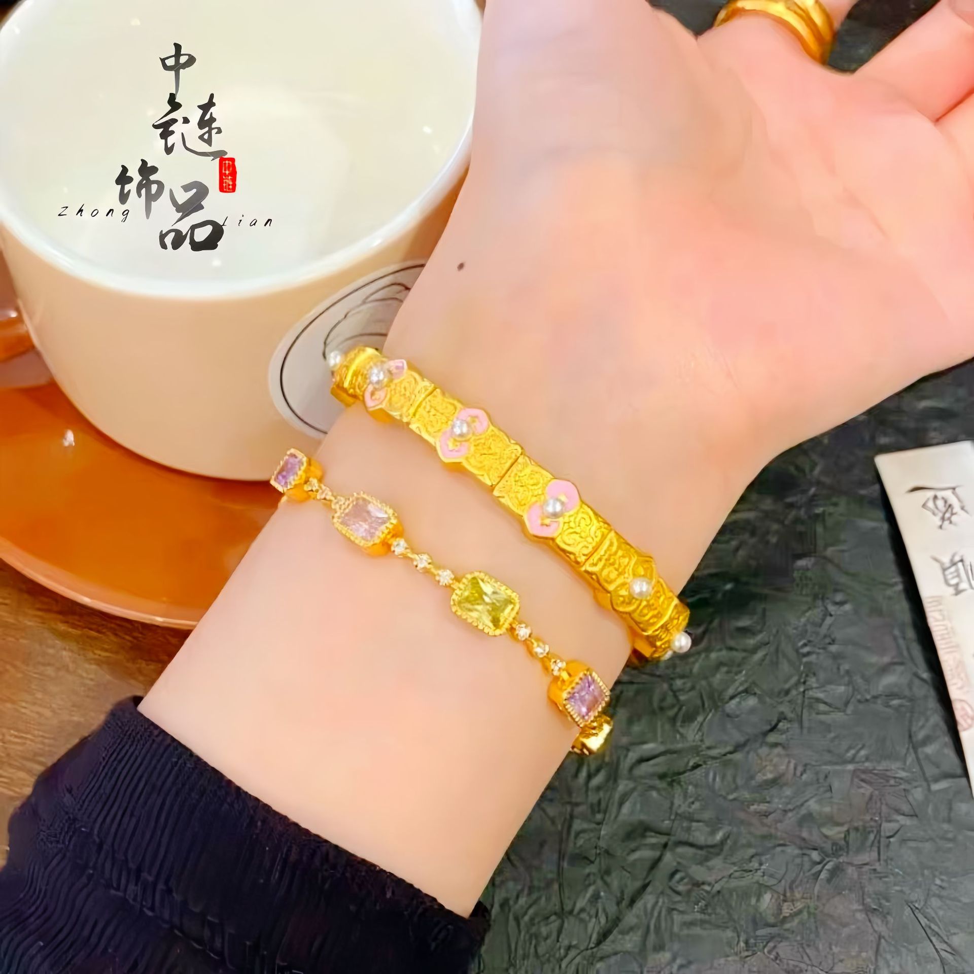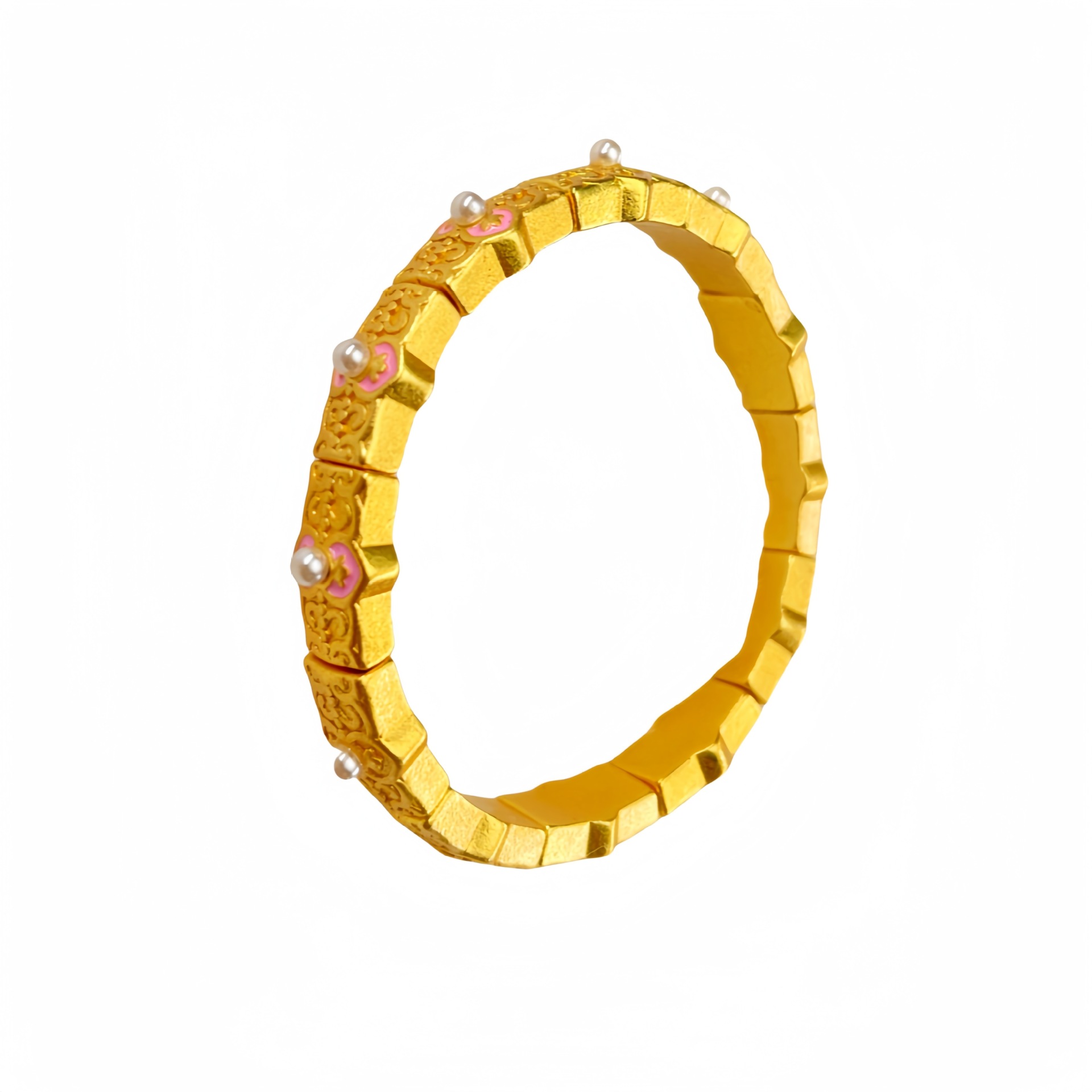 金店同款古法沙金蜜粉金十里红妆和美如意粉色系弹力手镯女