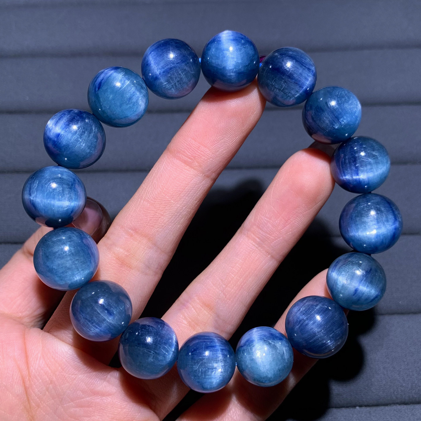 天然猫眼蓝晶石手串蓝色闪片水晶手链清新饰品时尚配饰礼物情侣款