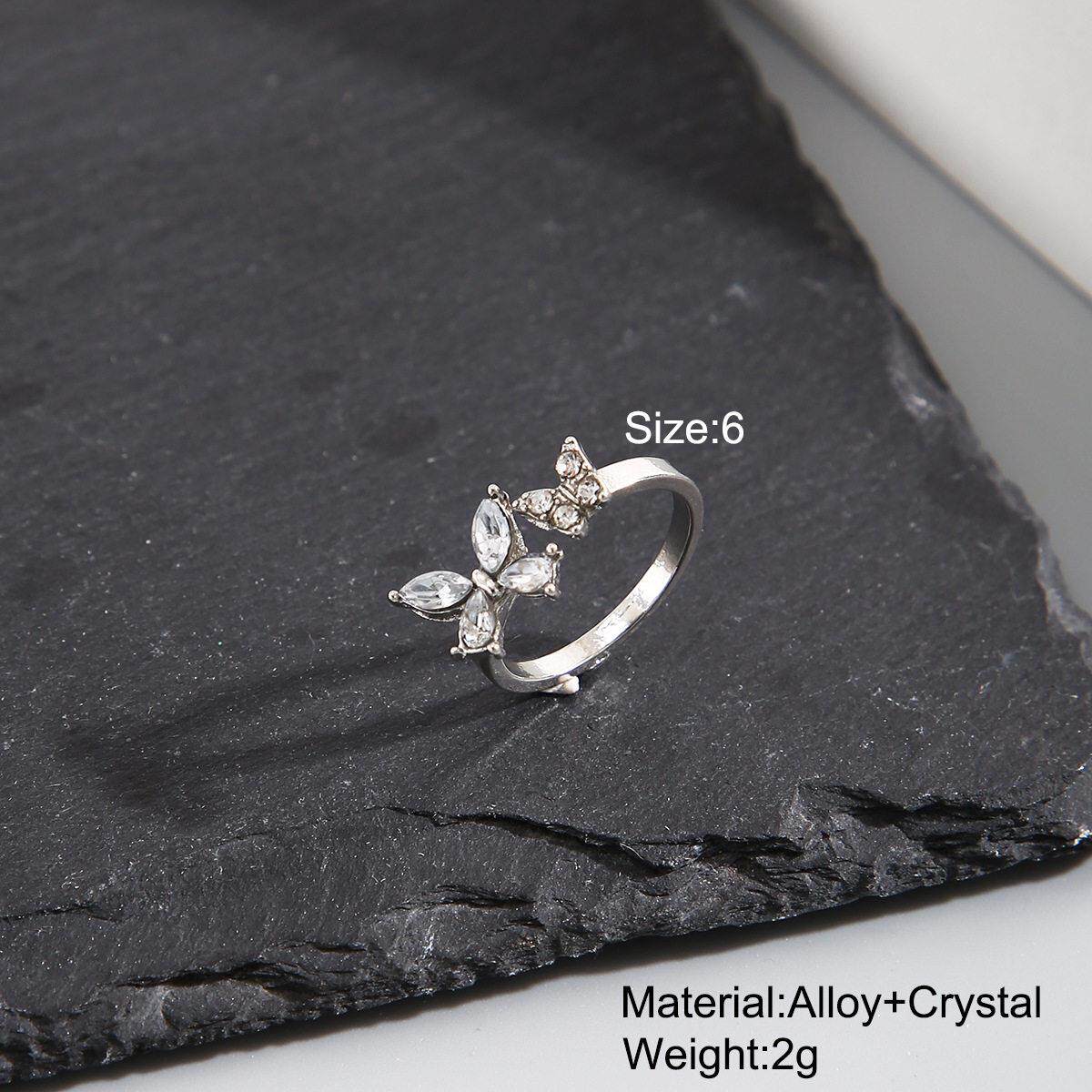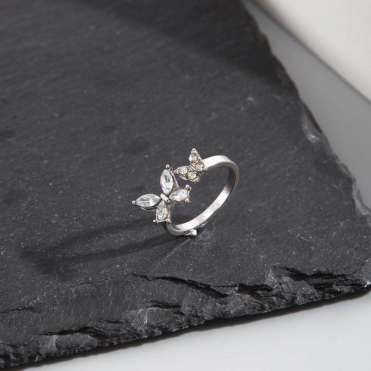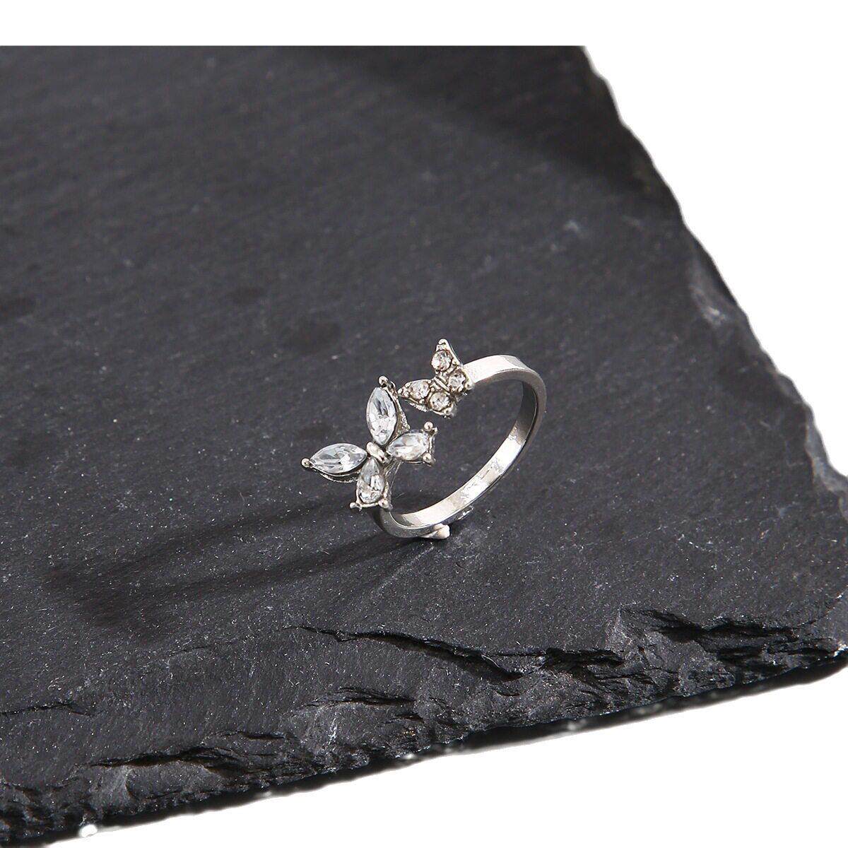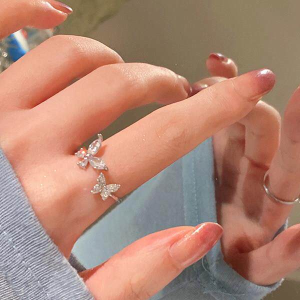 Butterfly ring opening rings镶钻蝴蝶戒指开 口可调节戒指关节