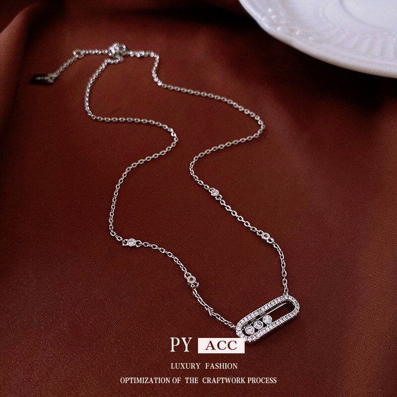 锆石椭圆镂空吊坠项链新款时尚设计感锁骨链轻奢高级感饰品女