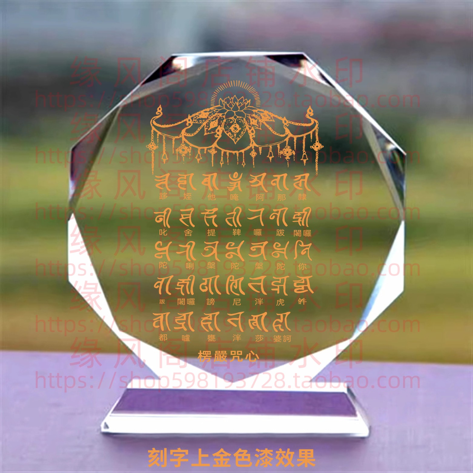 结缘楞严咒心水晶摆件佛家居佛堂玄关摆件供养摆台桌面摆饰装饰品