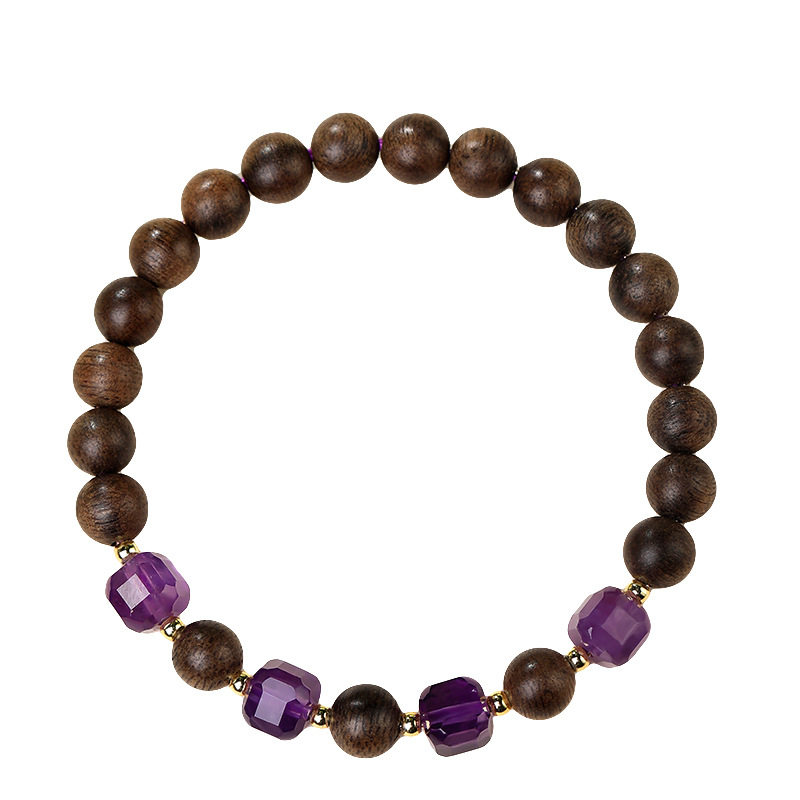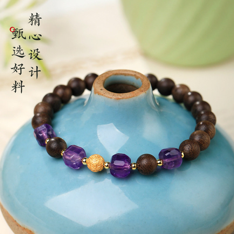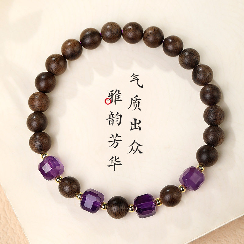 奇楠沉香手串女生新中式方块紫水晶转运珠木质手链饰闺蜜朋友礼物